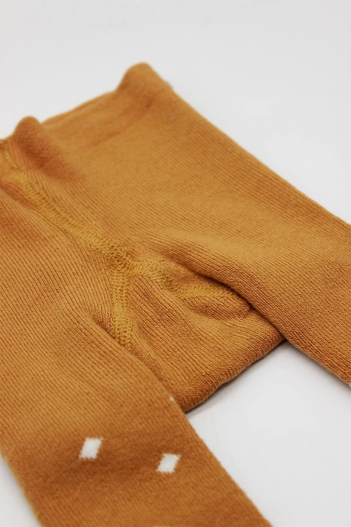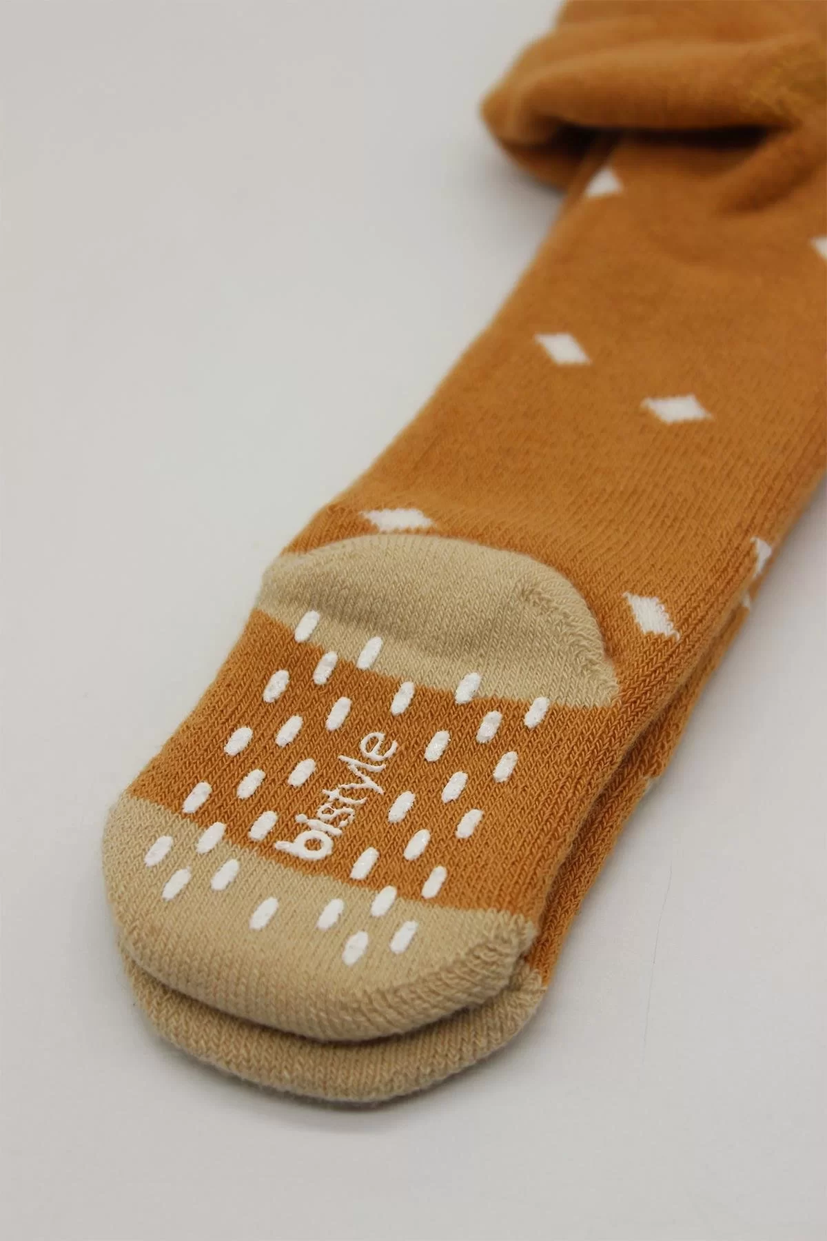 Tekli Puan Kaymaz Havlu Külotlu Çorap Hardal