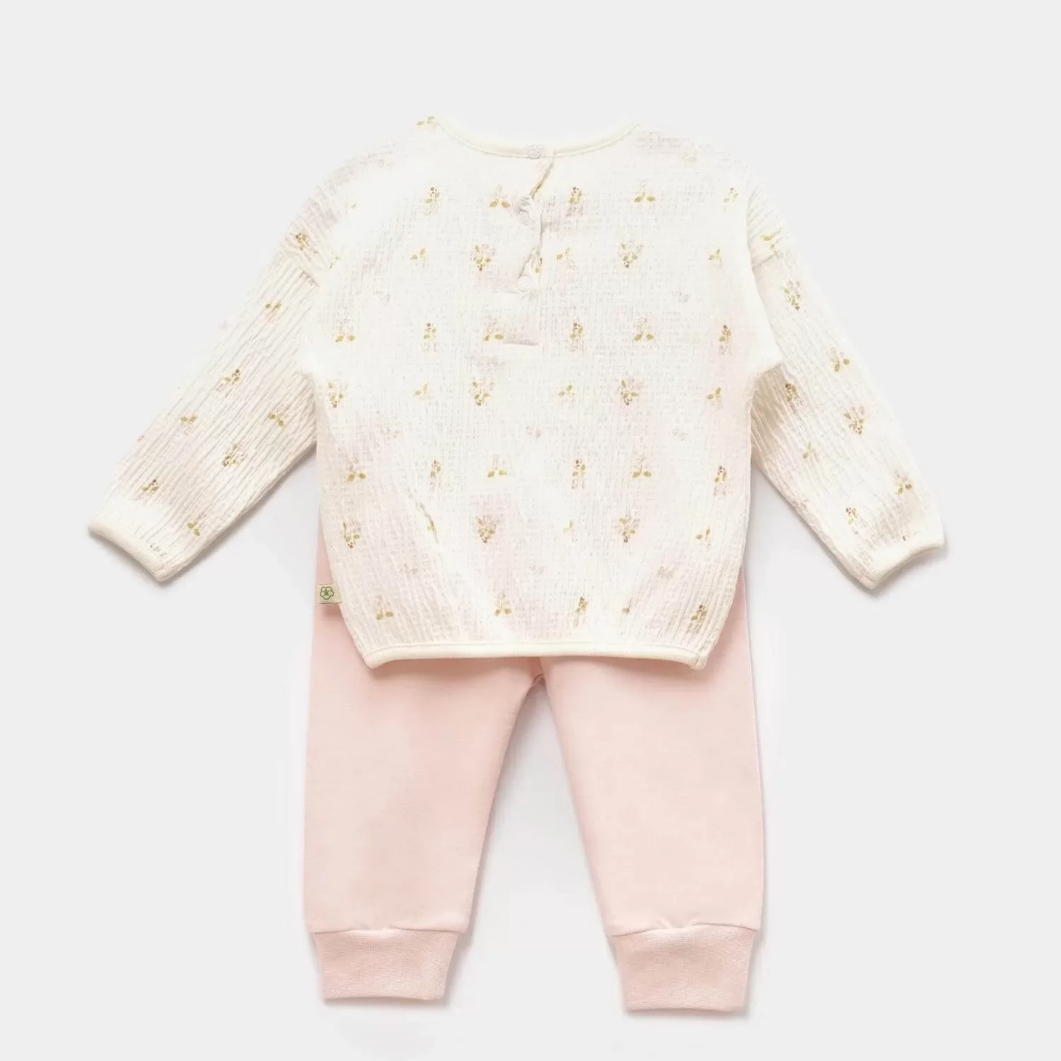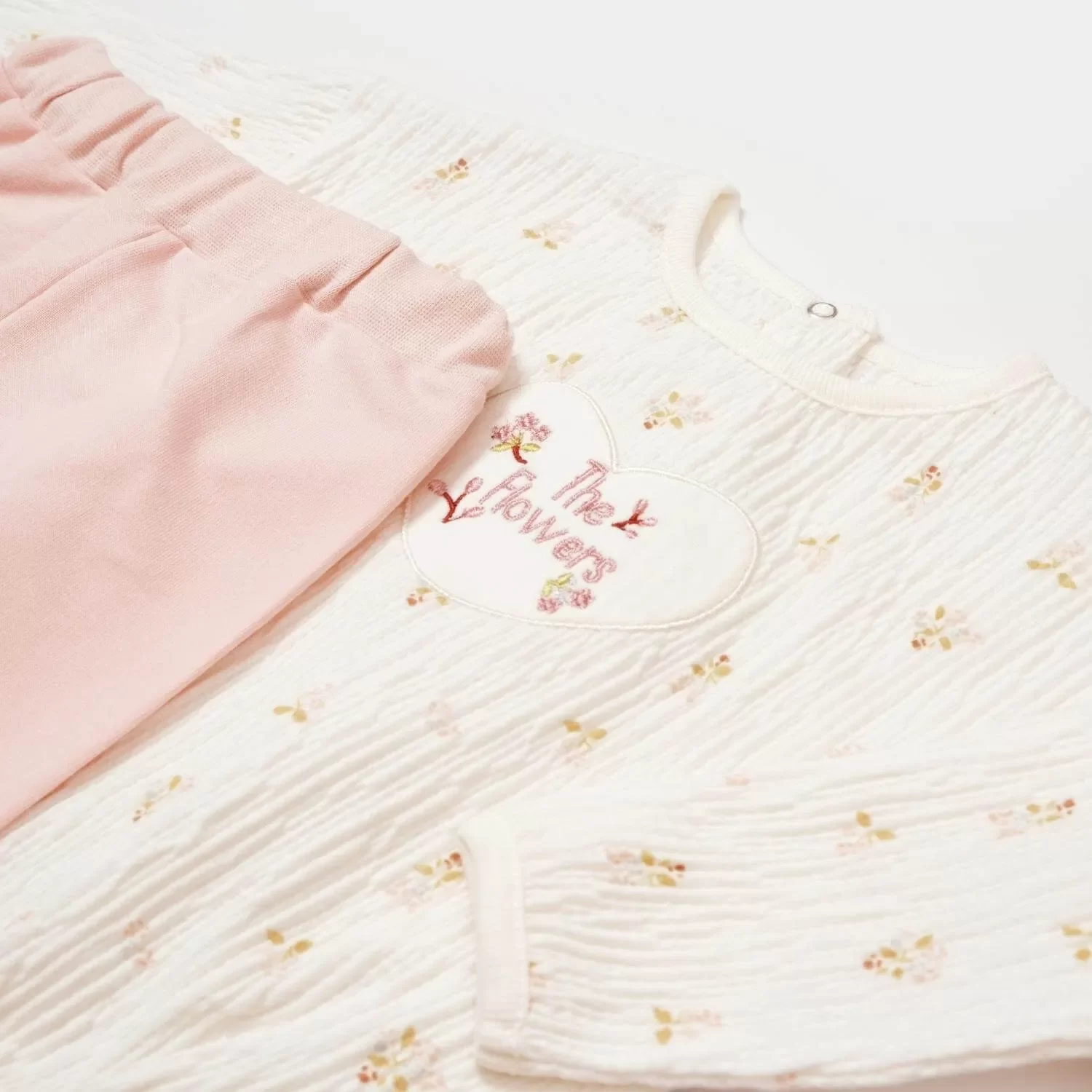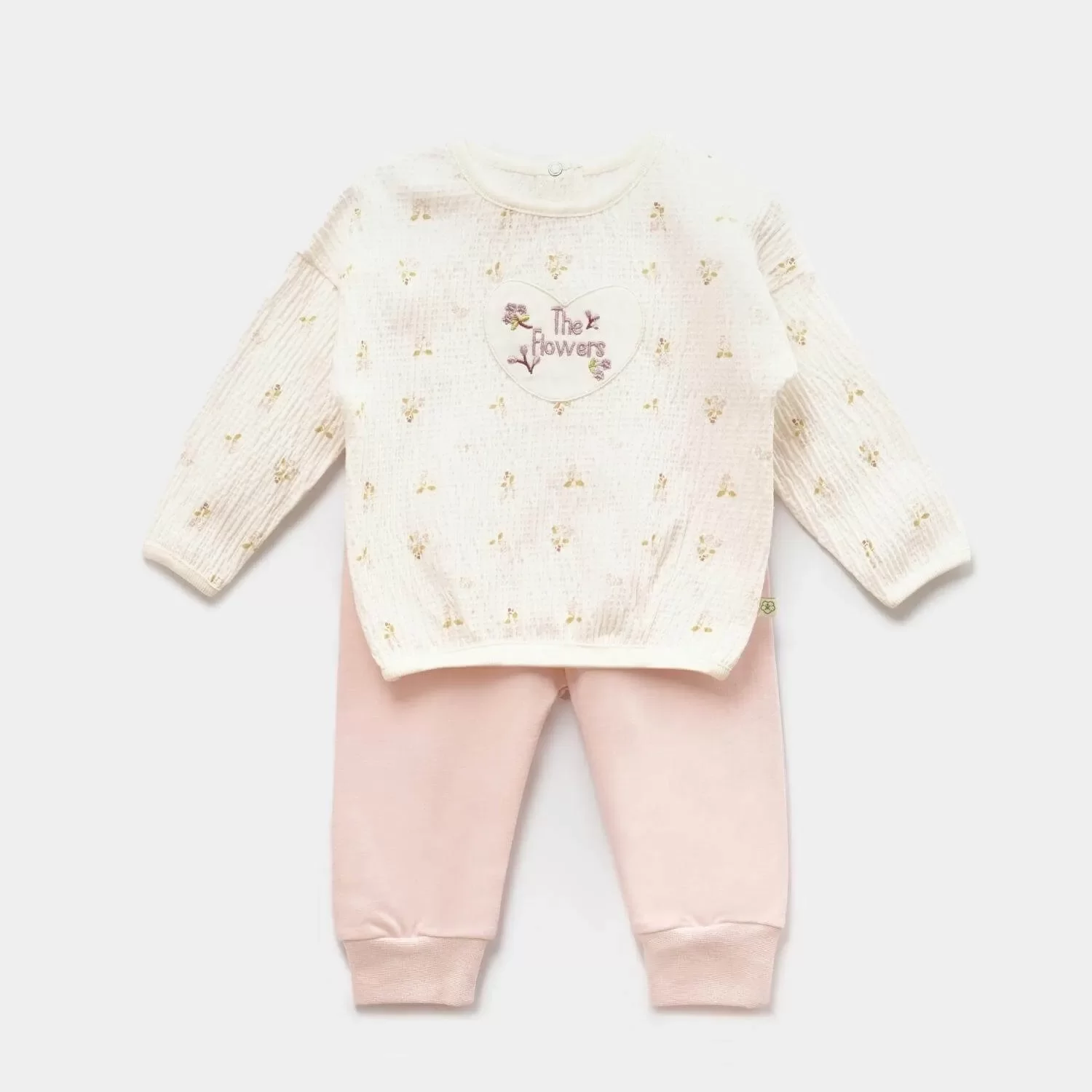 Bebek takımı pamuklu kumaştan üretilmiştir.