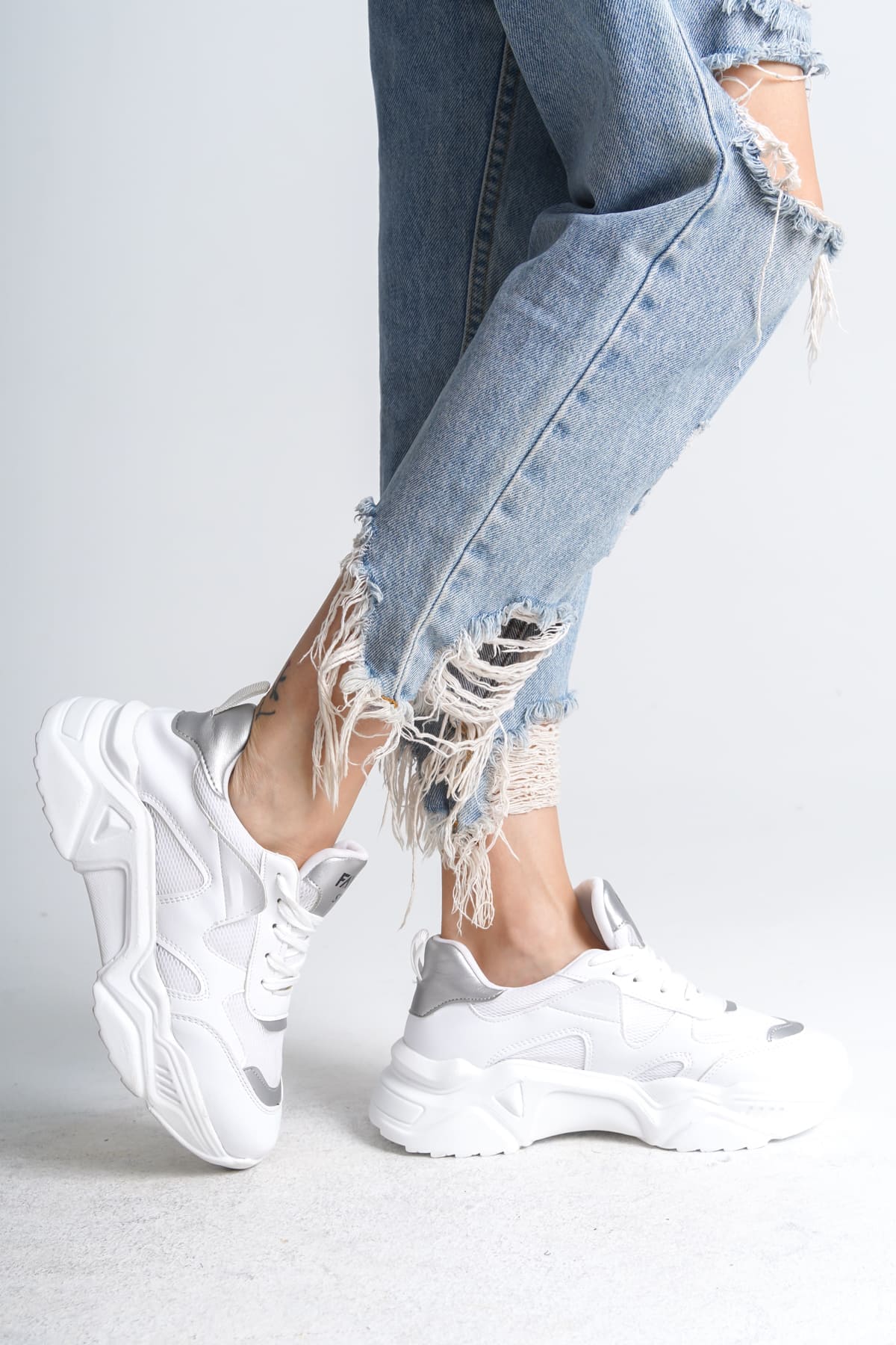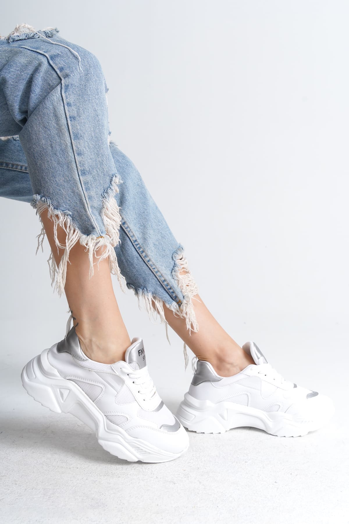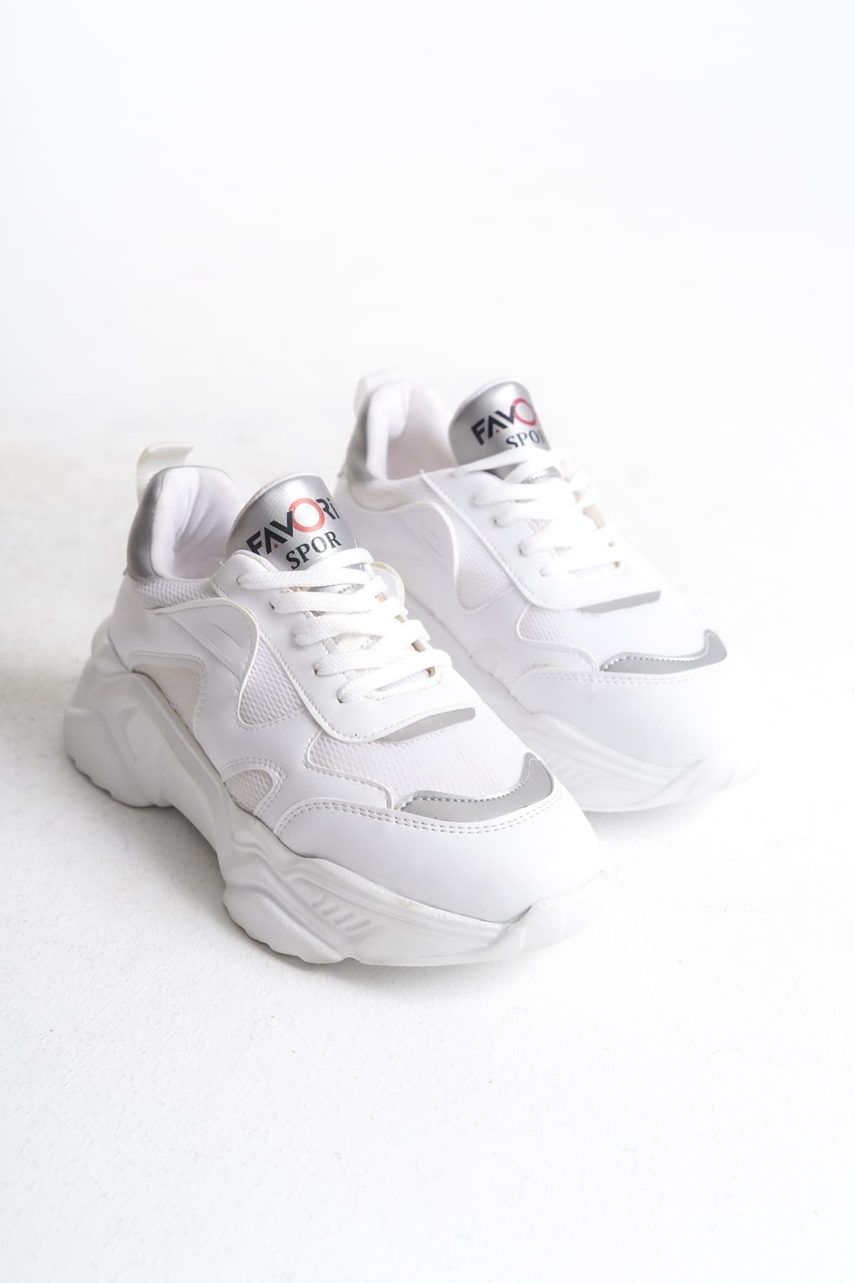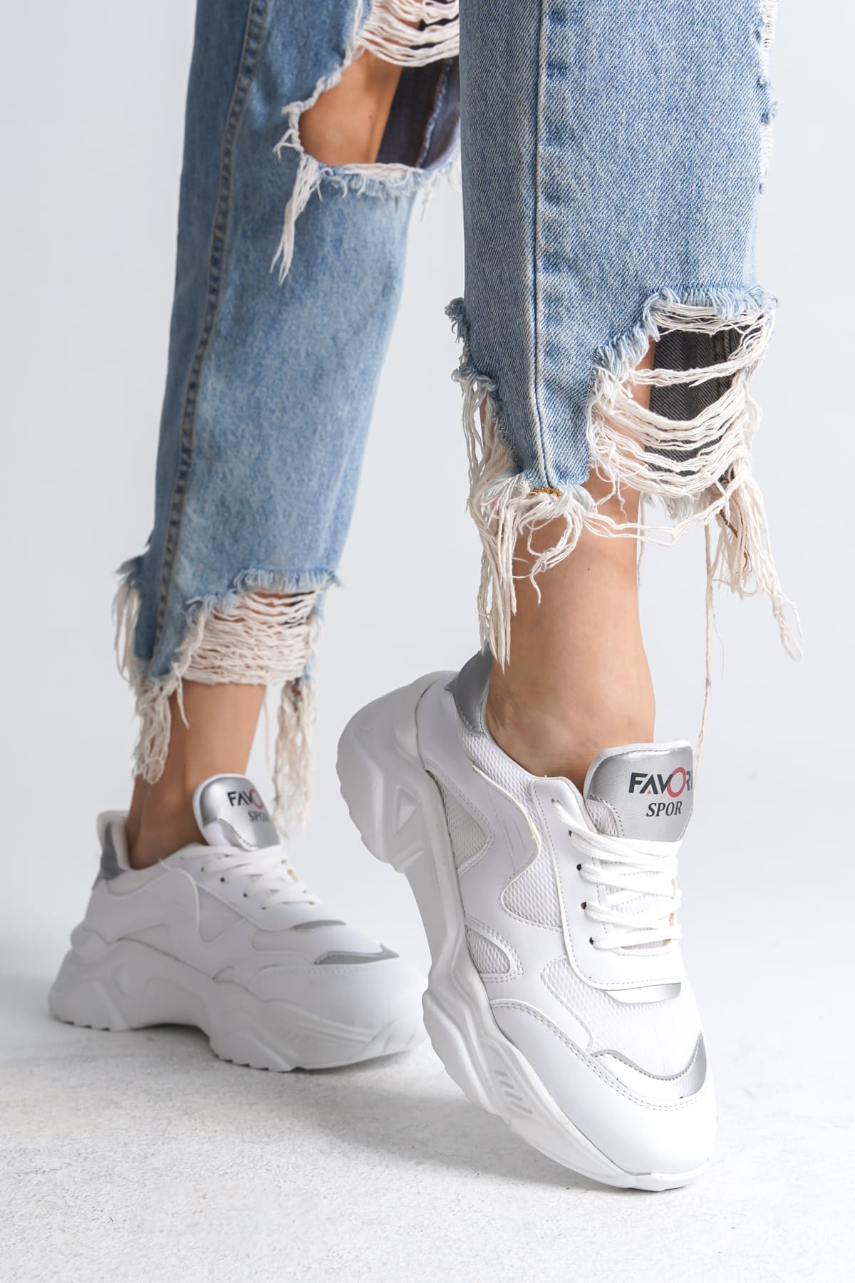 TOKYO Bağcıklı Ortopedik Taban Triko Detaylı Kadın Spor Ayakkabı TBT – Beyaz/Gri