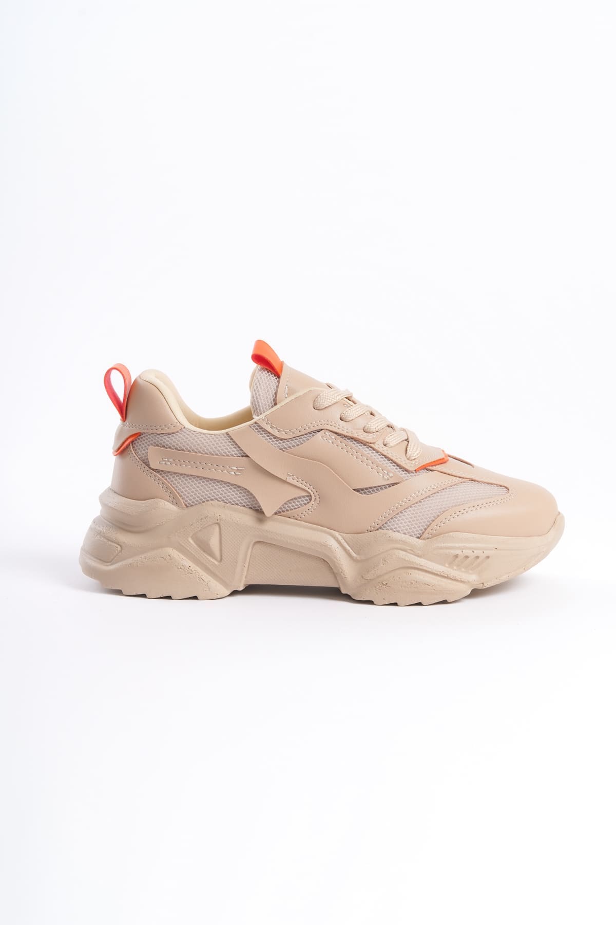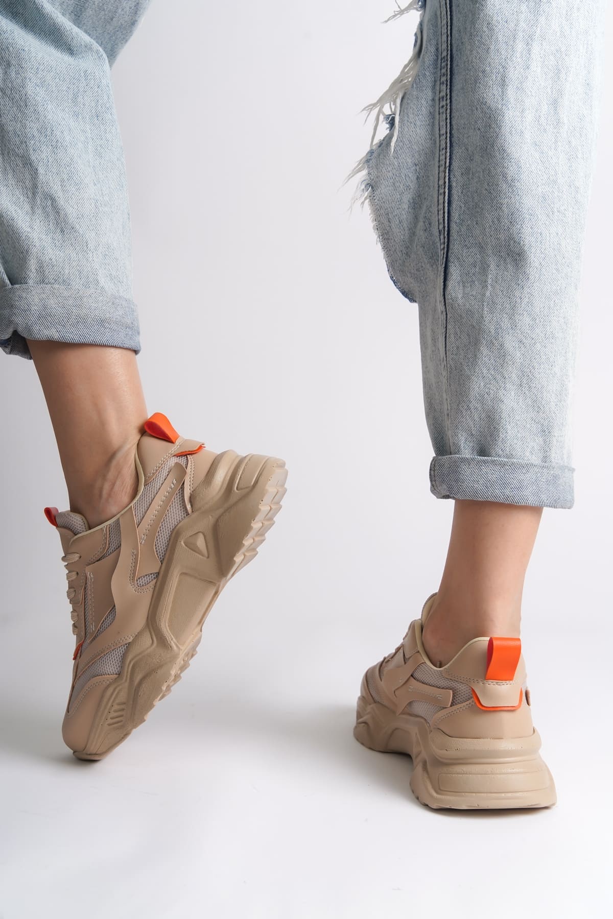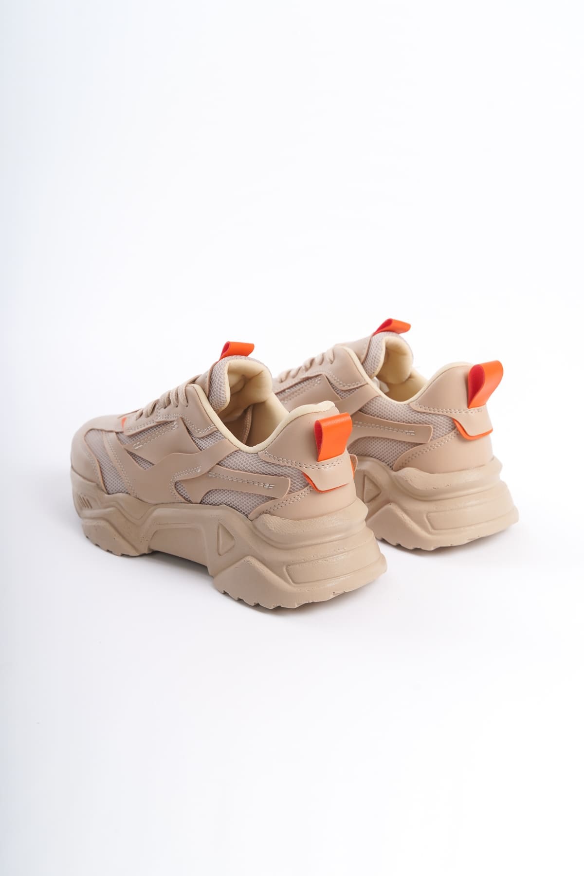 TOKYO Bağcıklı Ortopedik Taban Triko Detaylı Kadın Spor Ayakkabı TTT – Ten/Turuncu