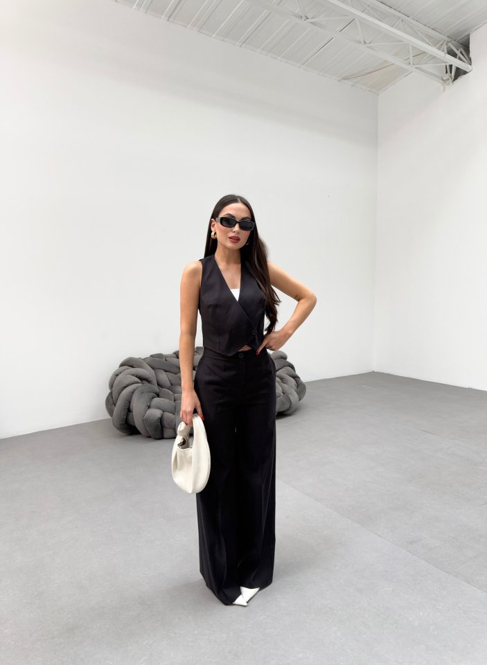 Toskana Keten Kruvaze Yaka Tek Düğmeli̇ Yelek Pantolon Takim