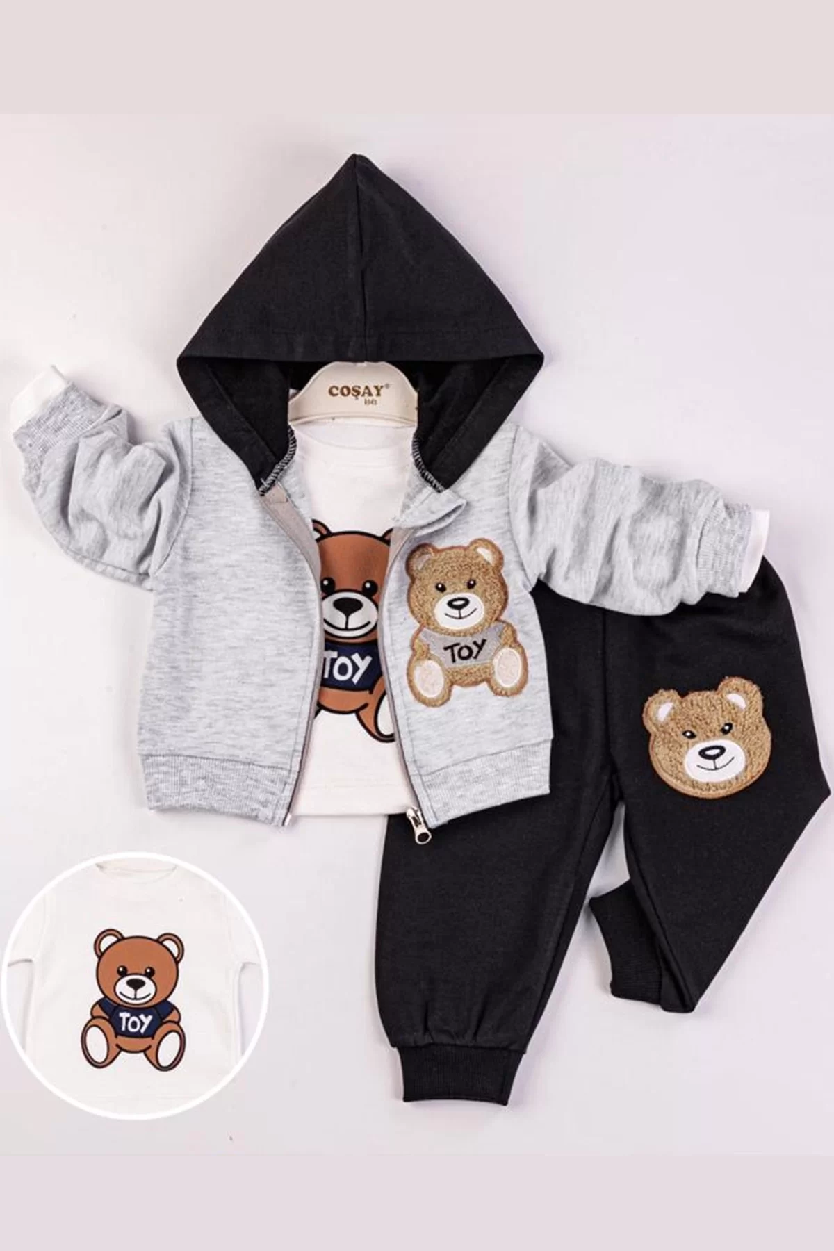 Toy Bear Nakışlı 3’lü Hırkalı Erkek Bebek Takımı