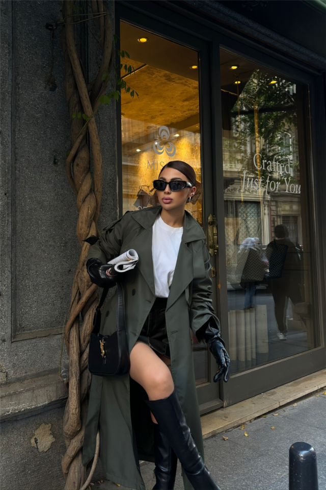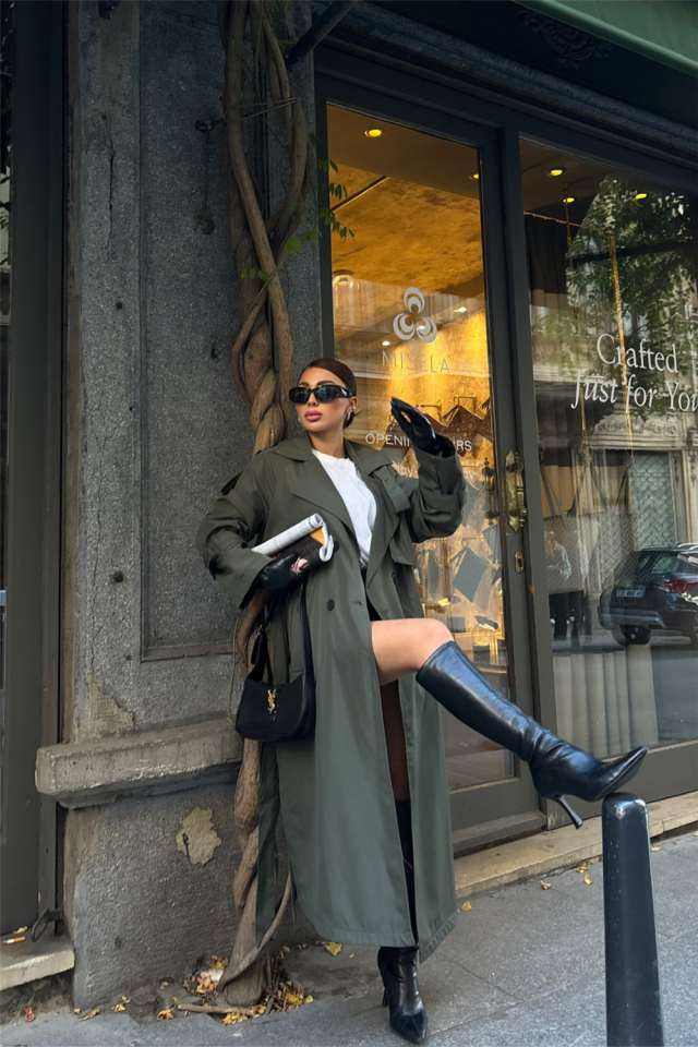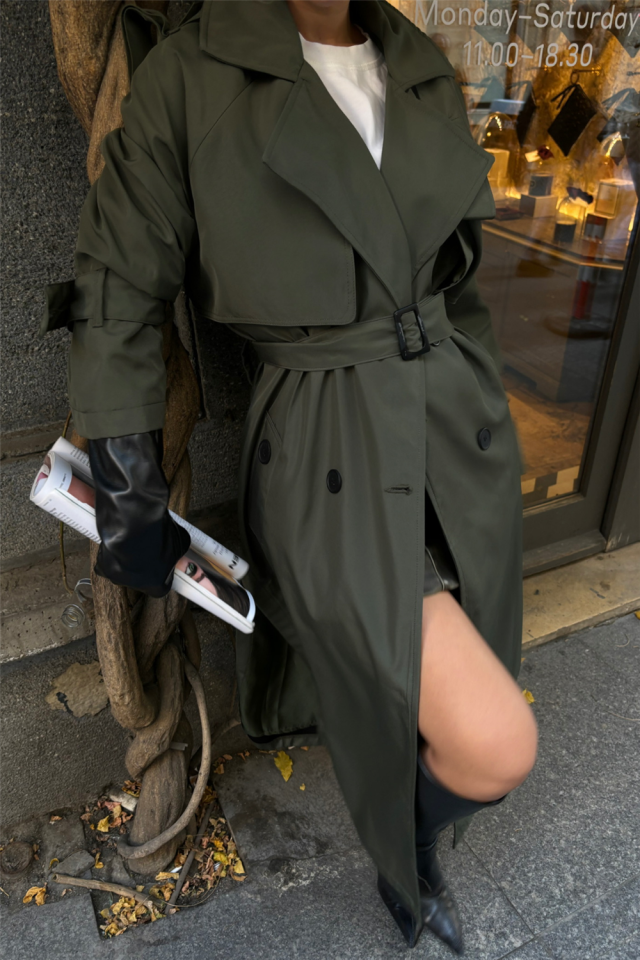 TRENCH YANDAN YIRTMAÇ DETAYLI – Haki
