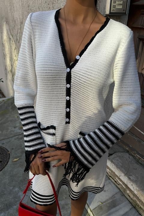 Triko Kolları Püsküllü Düğmeli Elbise 2849