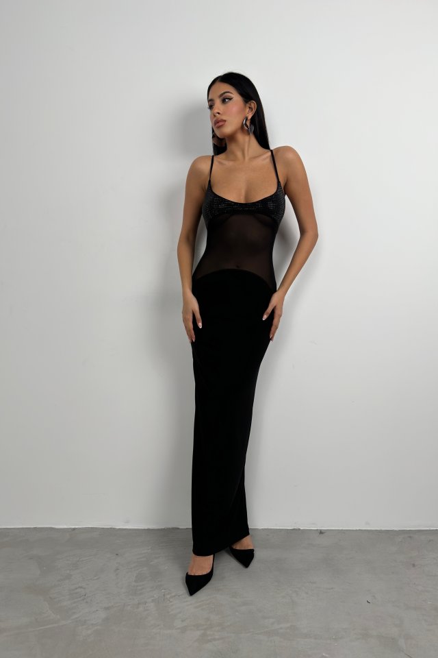 Tül Garnili Payetli Maxi Elbise