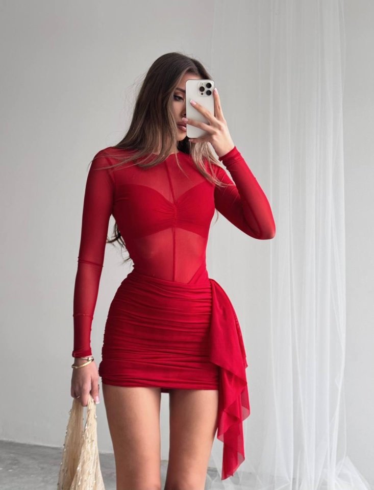 Modelin Ölçüleri: Boy:165, Kg:55, Göğüs:90, Bel:72, Kalça: 100