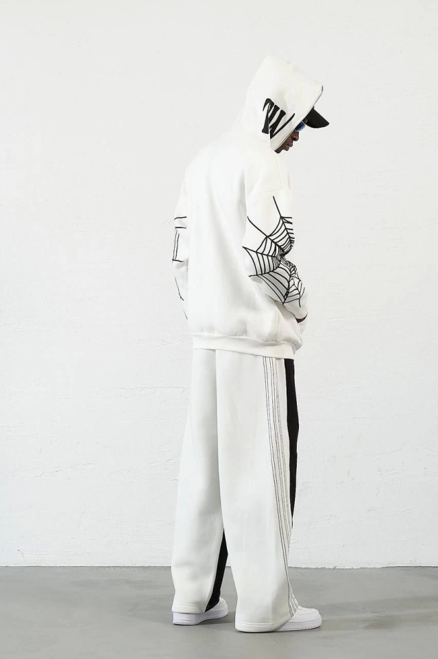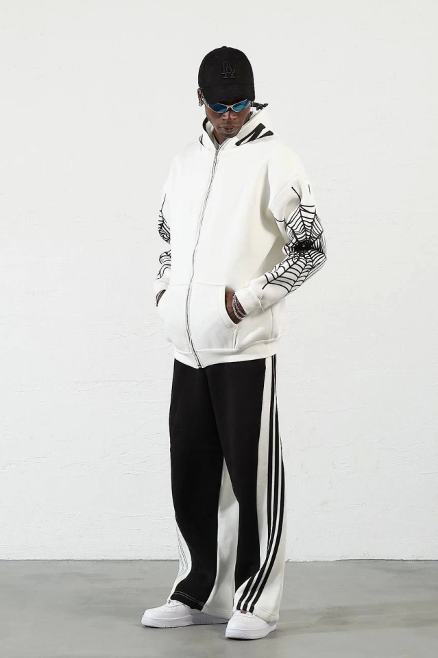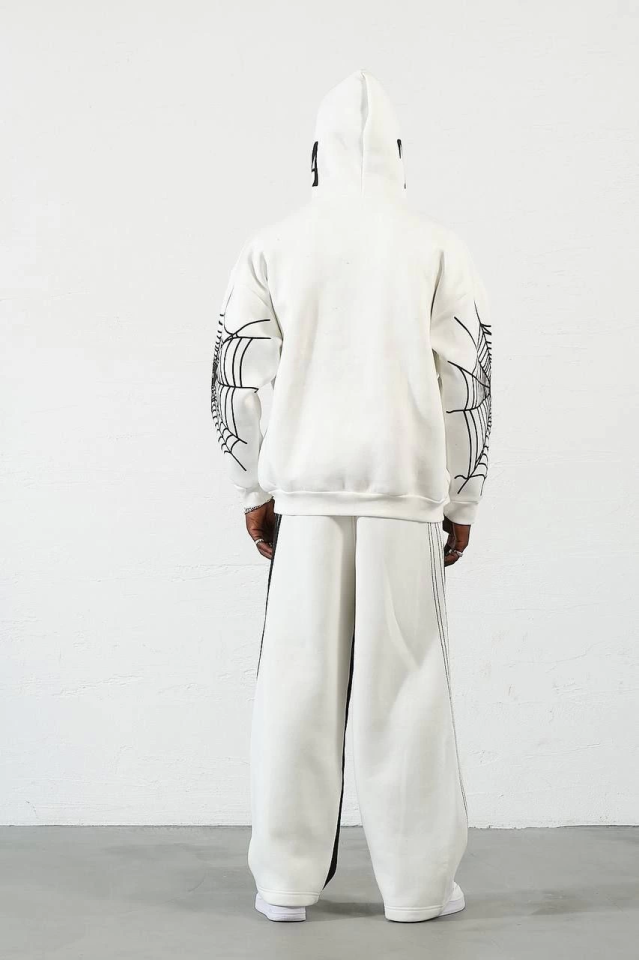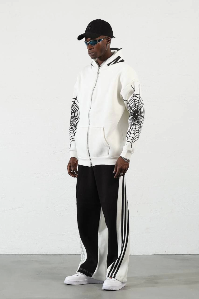 Üç İplik Baskılı Fermuarlı Kapşonlu Hırka – Beyaz