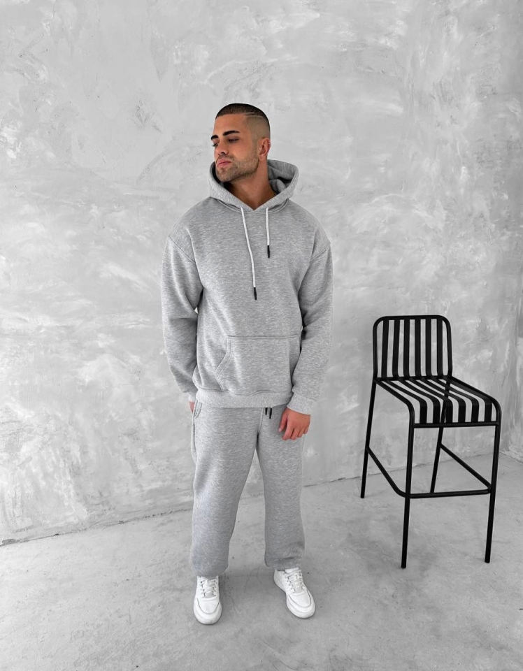 Üç İplik Kapşonlu Eşofman Takım – Gri