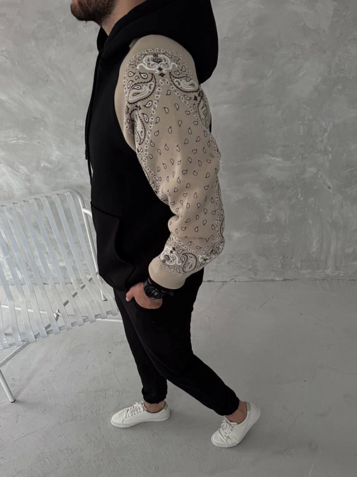 Üç İplik Penye Kapşonlu Parçalı SweatShirt – Siyah