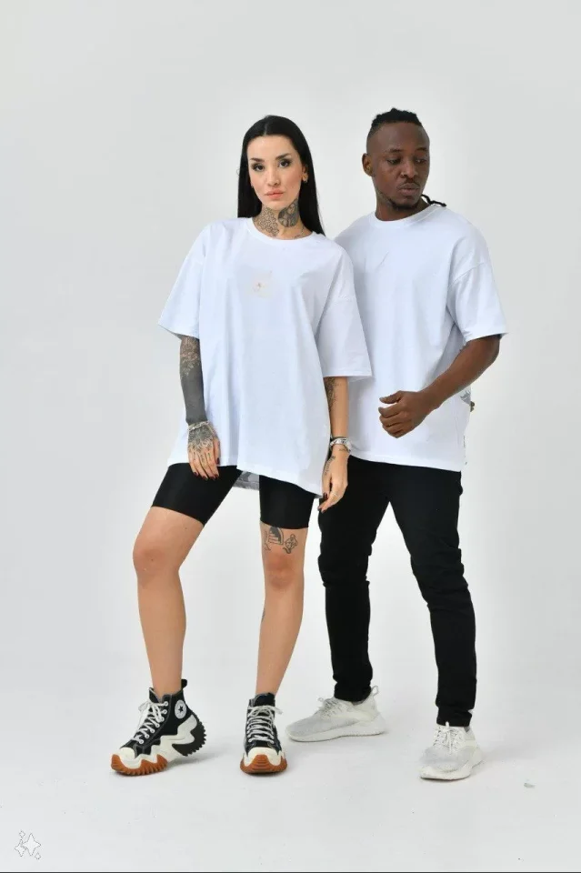 Unisex Basic Bisiklet Yaka Oversize T-Shirt – Beyaz