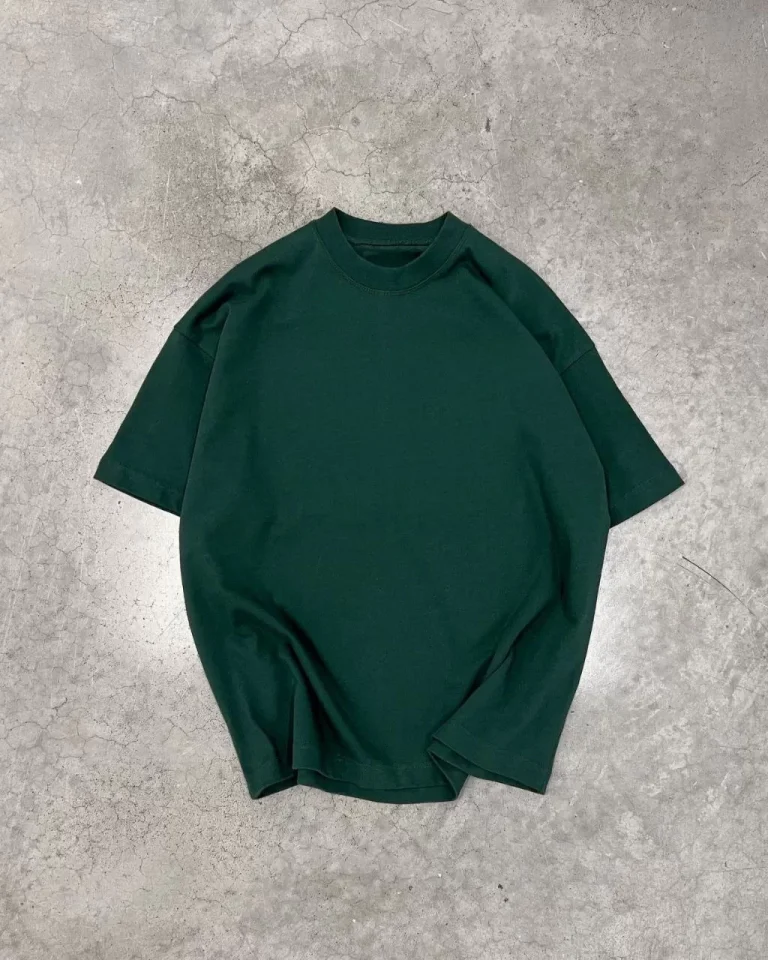 Unisex Basic Bisiklet Yaka Oversize T-Shirt – Haki
