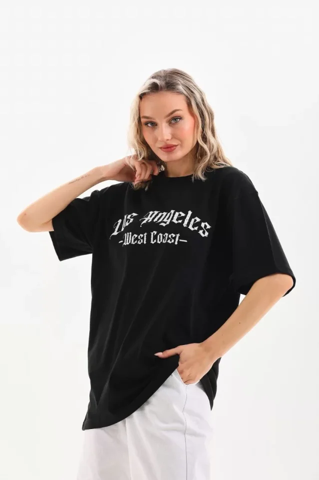 Unisex Baskılı Oversize T-Shirt – Siyah