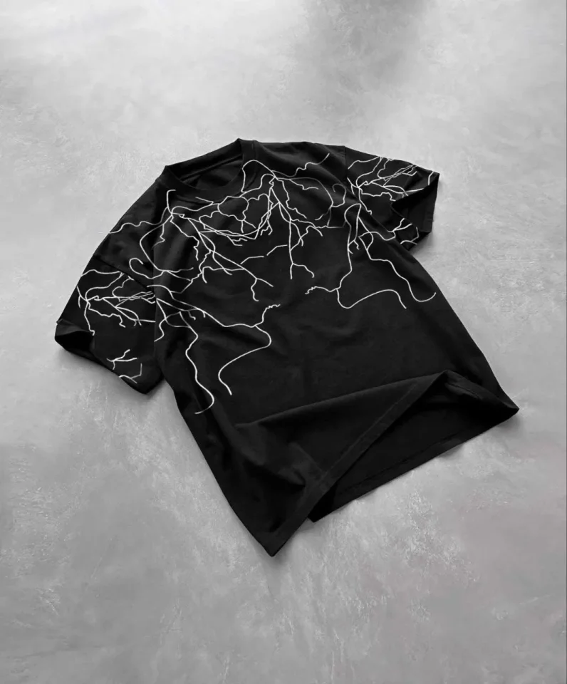 Unisex Bisiklet Yaka Baskılı Oversize T-Shirt – Siyah