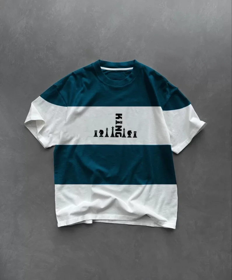 Unisex Bisiklet Yaka Baskılı Parçalı Oversize T-Shirt – Lacivert