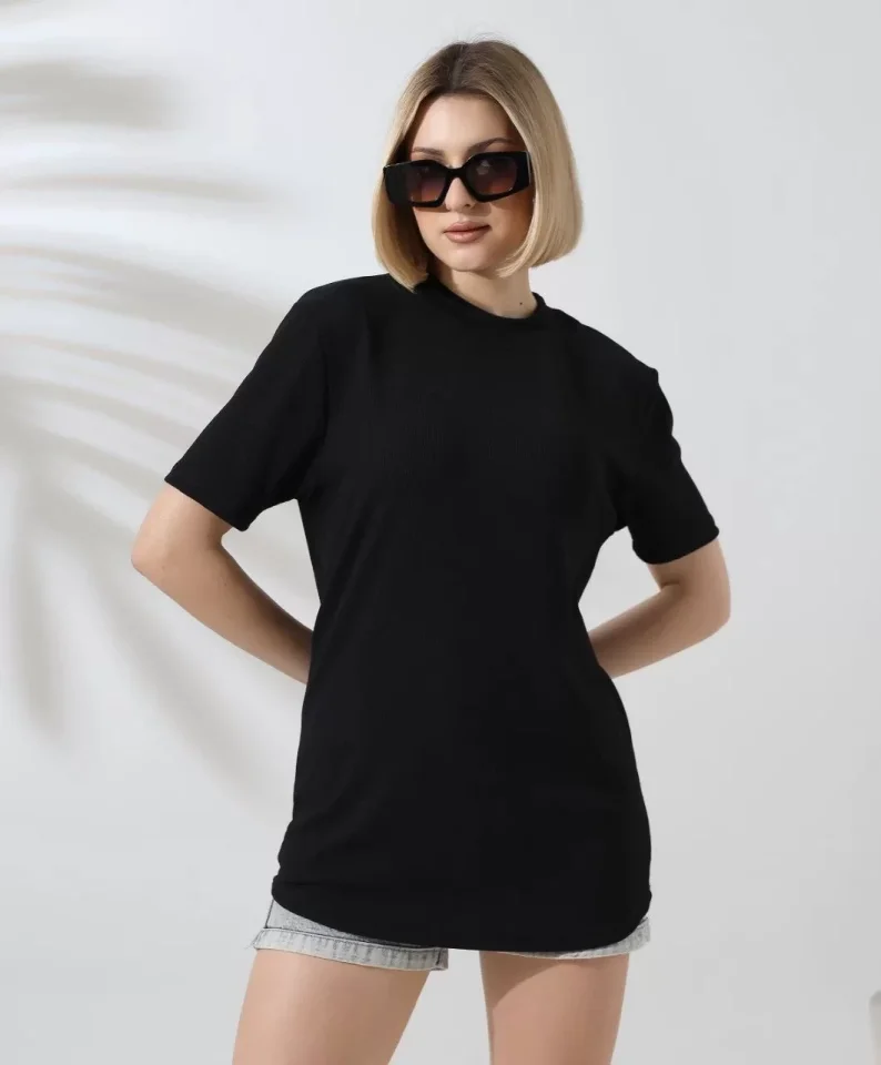 Unisex Bisiklet Yaka Slim Fit T-Shirt – Siyah
