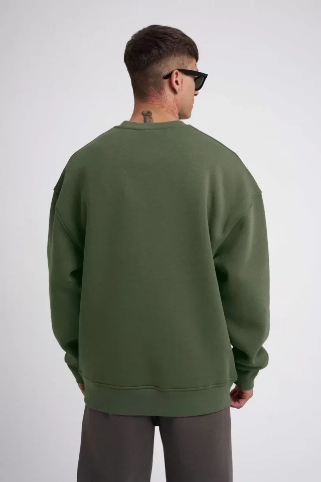 Unisex Biskilet Yaka Üç İplik SweatShirt – Haki