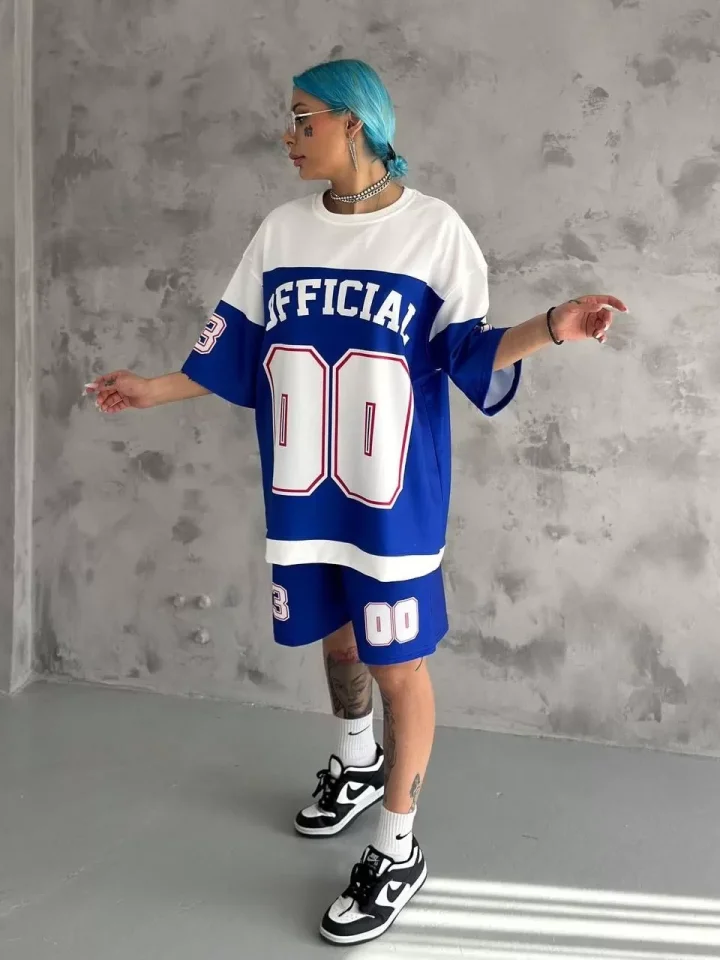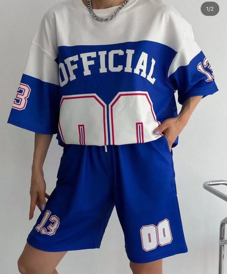 Unisex Dijital Baskılı Şortlu Takım – Mavi