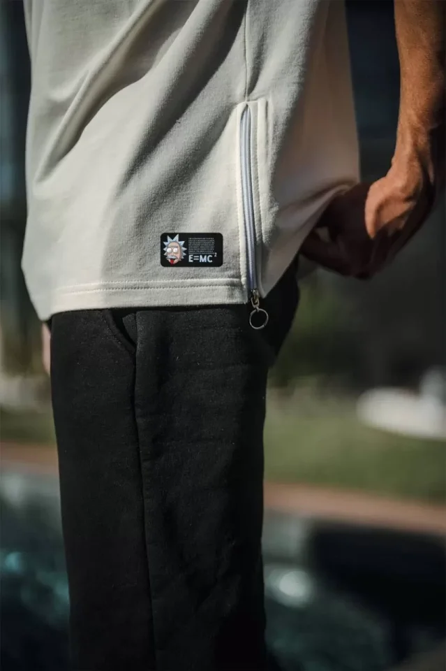 Unisex İki Yandan Fermuarlı Parçalı Baskılı Oversize T-shirt – Beyaz