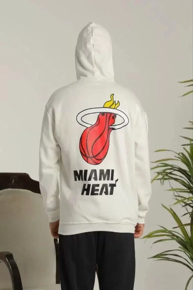 Unisex Kapşonlu Baskılı Sweetshirt – Beyaz