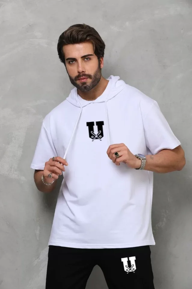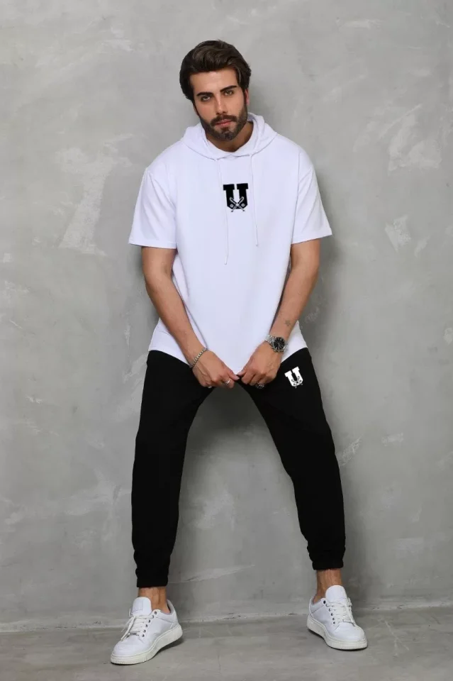 Unisex Kapşonlu Oversize T-Shirt Takım – Beyaz