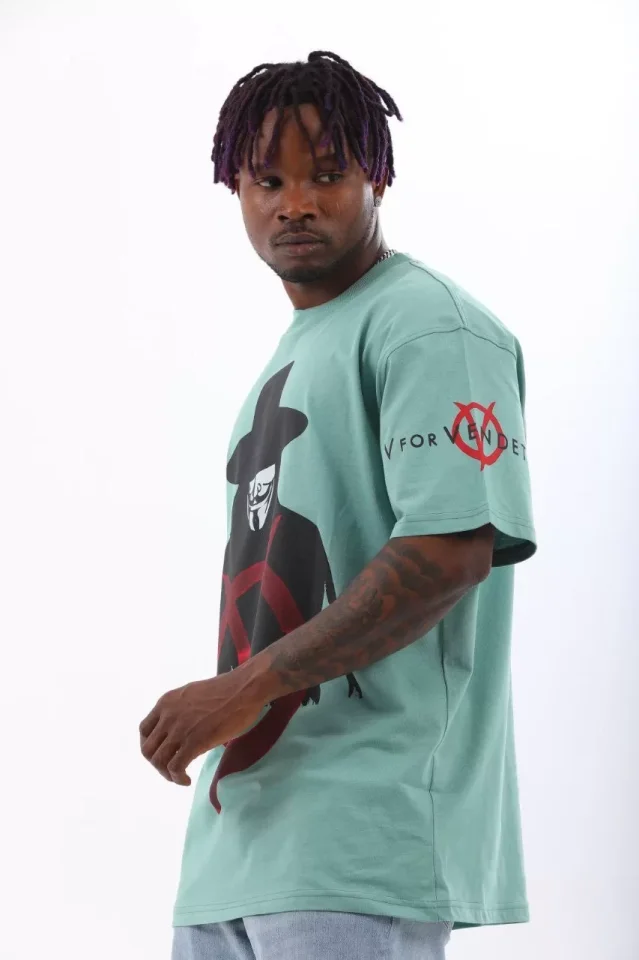 Unisex Oversize Baskılı Bisiklet Yaka T-Shirt – Mint Yeşili