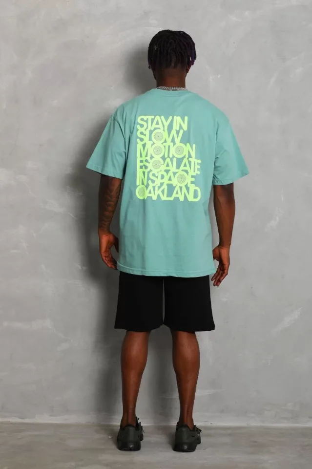 Unisex Oversize Baskılı Bisiklet Yaka T-Shirt – Mint Yeşili