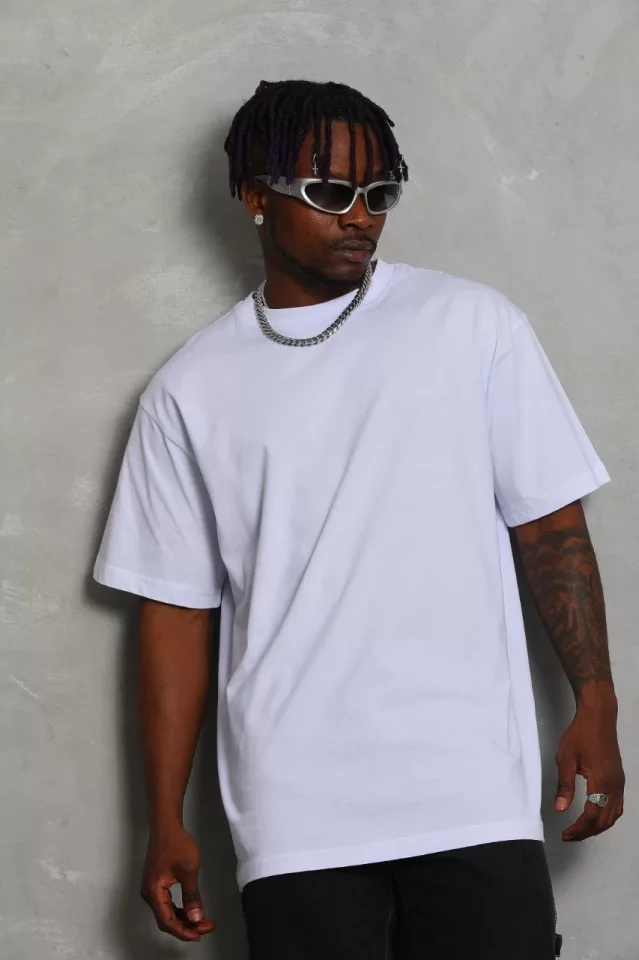 Unisex Oversize Düz Bisiklet Yaka T-Shirt – Beyaz