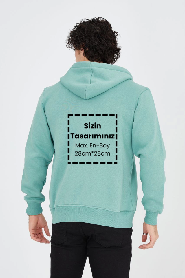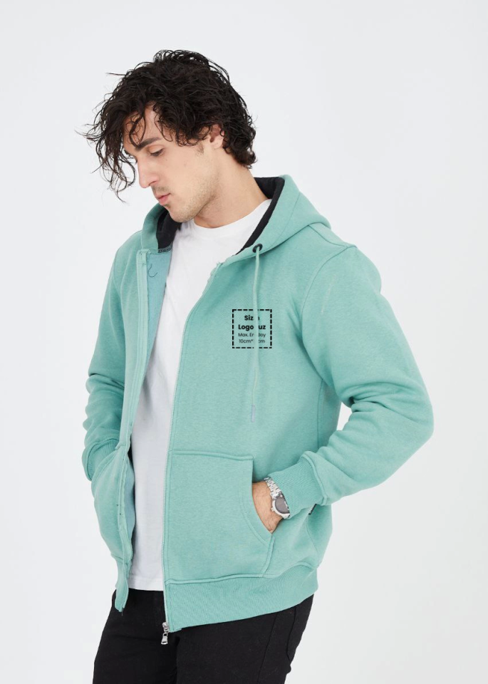 Unisex Tam Fermuarlı Kapşonlu Özel Tasarım SweatShirt – Mint Yeşili