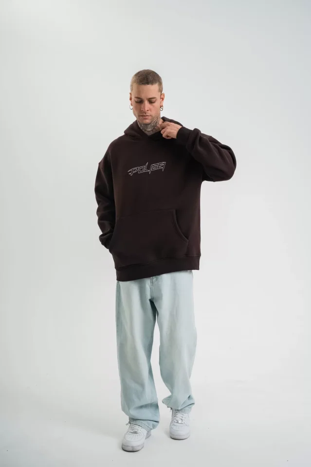 Unisex Üç İplik Kapşonlu Nakışlı SweatShirt – Kahve