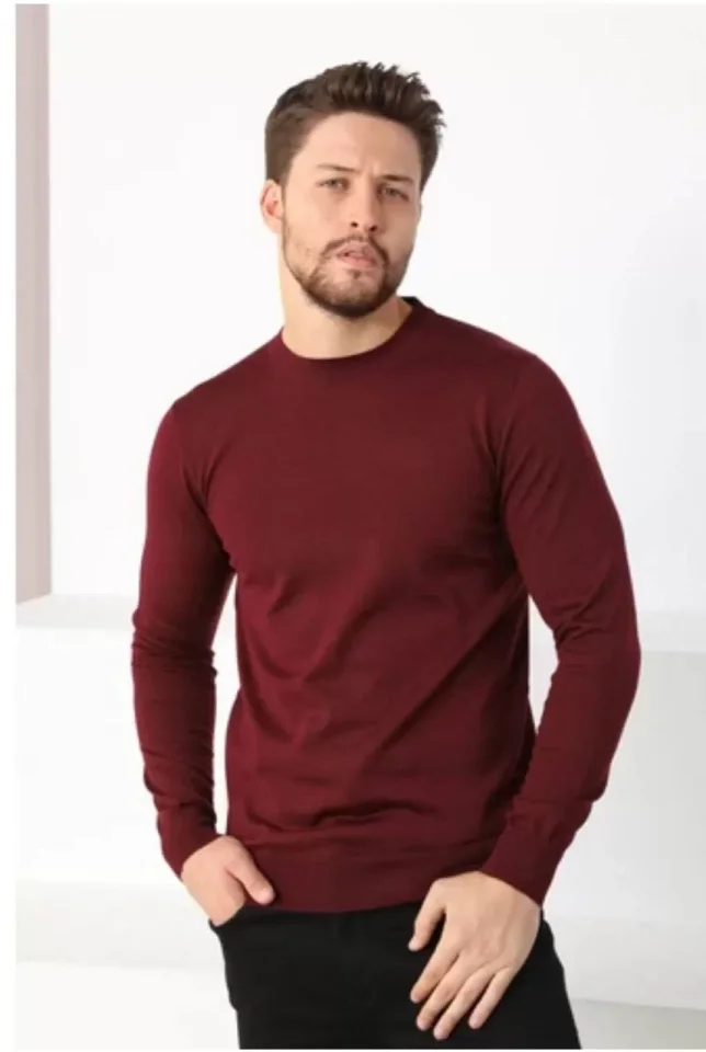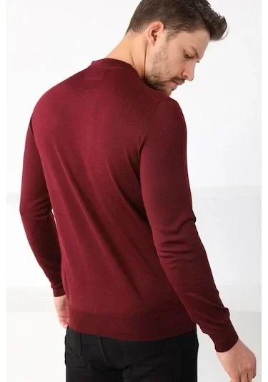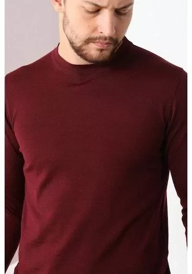 Unisex Uzun Kol Biskilet Yaka Dokuma Triko – Bordo