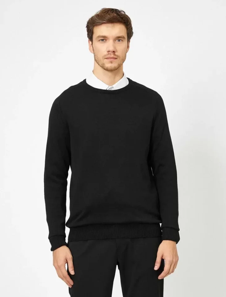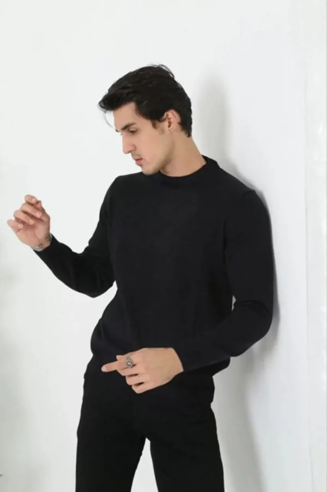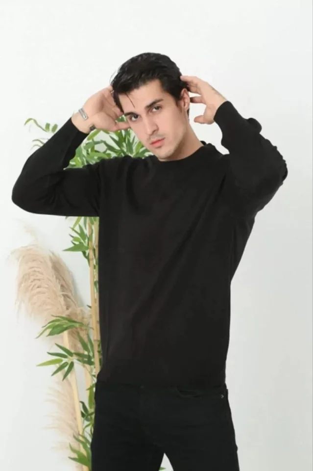 Unisex Uzun Kol Biskilet Yaka Dokuma Triko – Siyah