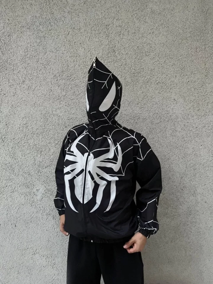 Unisex Uzun Kollu Kapşonlu Rüzgarlik – Siyah