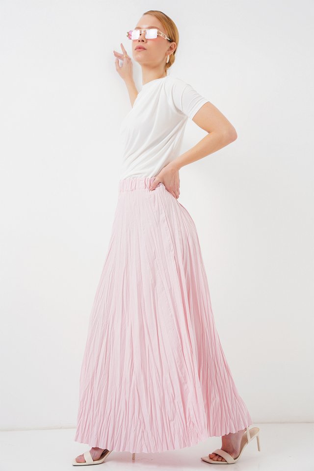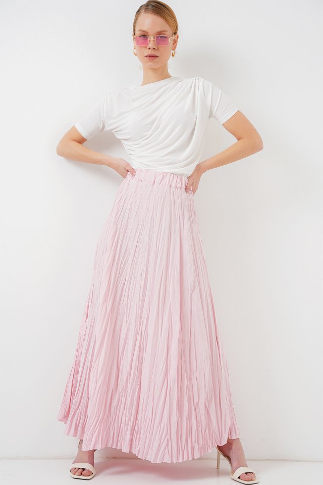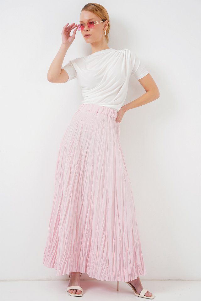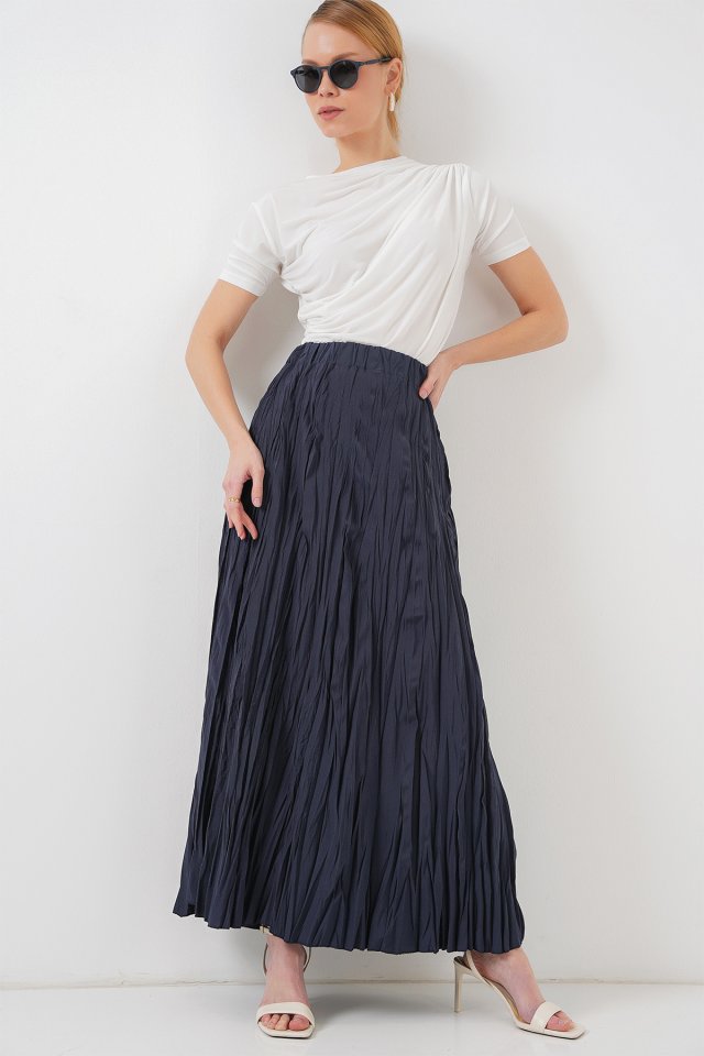 Uzun Kırışık Etek 8042 – Zümrüt Yeşili