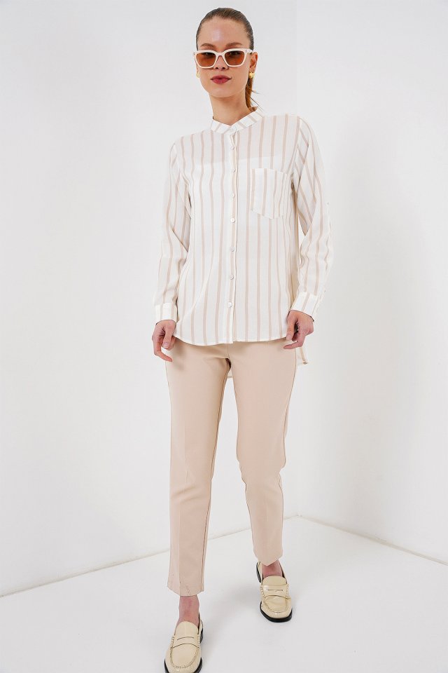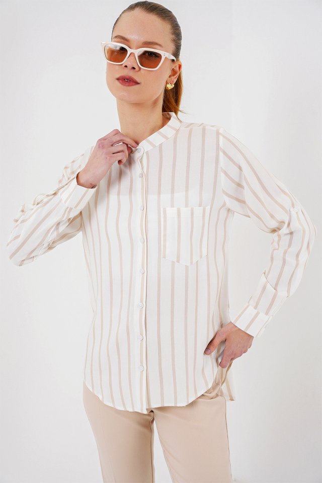 Uzun Kollu Çizgili Gömlek 20283 – Bej