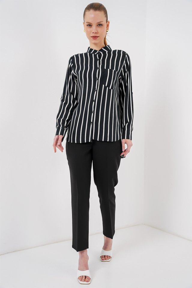 Uzun Kollu Çizgili Gömlek 20283 – Siyah