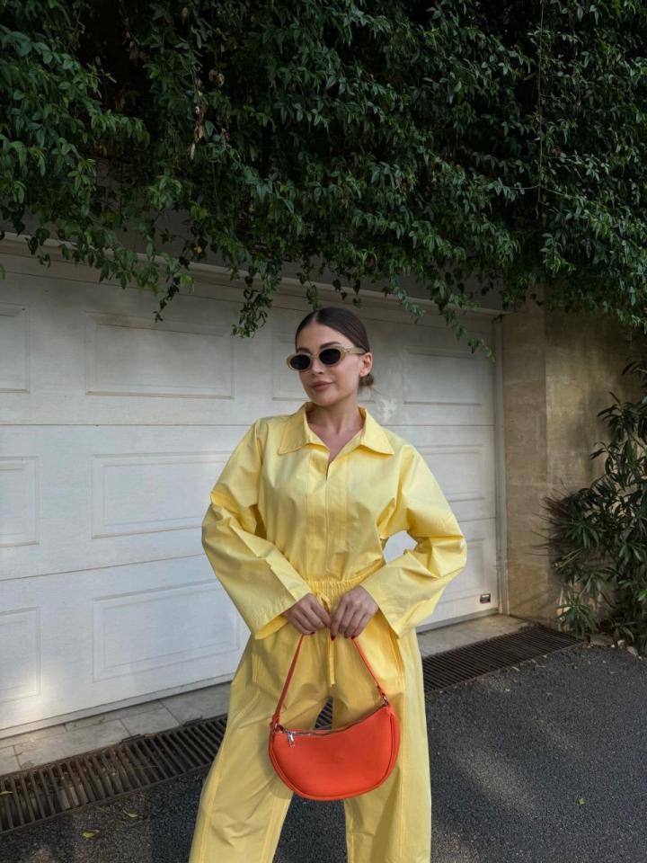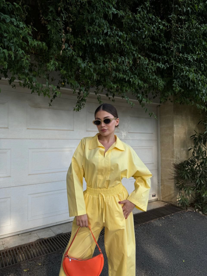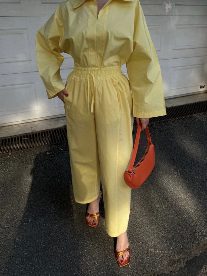 Uzun Kollu Yakalı Gömlek Pantalon Takım- Sarı