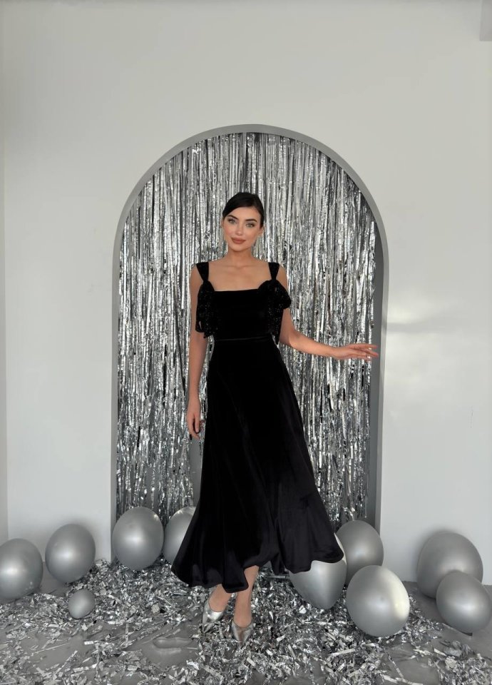 Modelin Ölçüleri: Boy:165, Kg:55, Göğüs:90, Bel:72, Kalça: 100