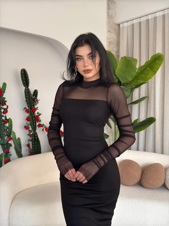 Modelin Ölçüleri: Boy:165, Kg:55, Göğüs:90, Bel:72, Kalça: 100