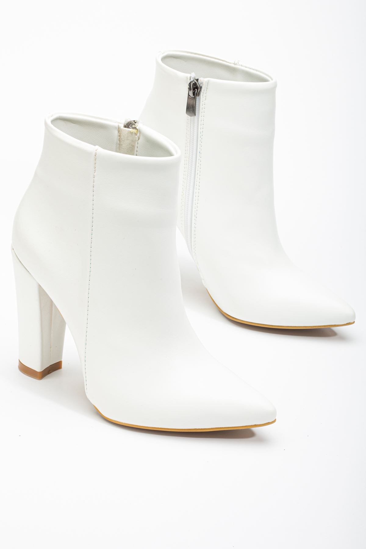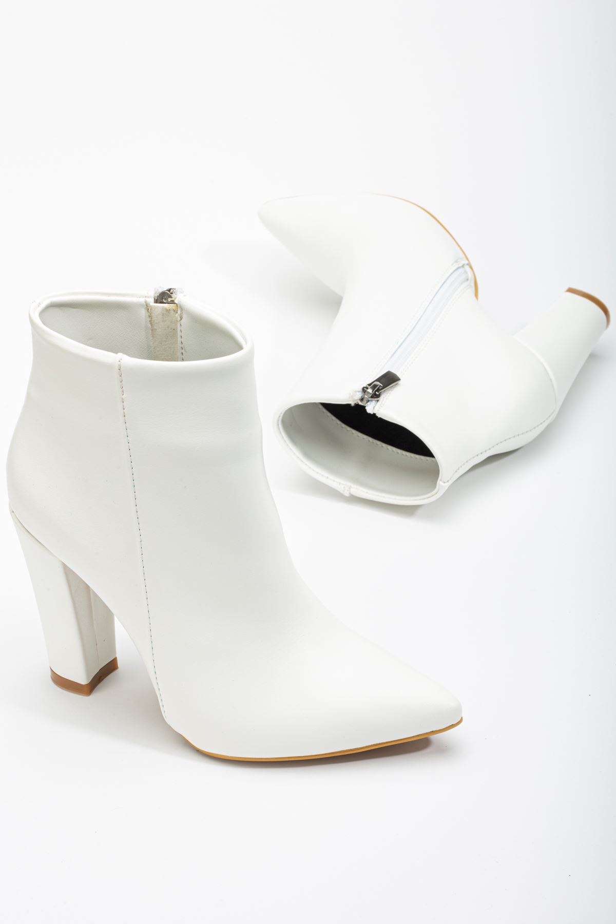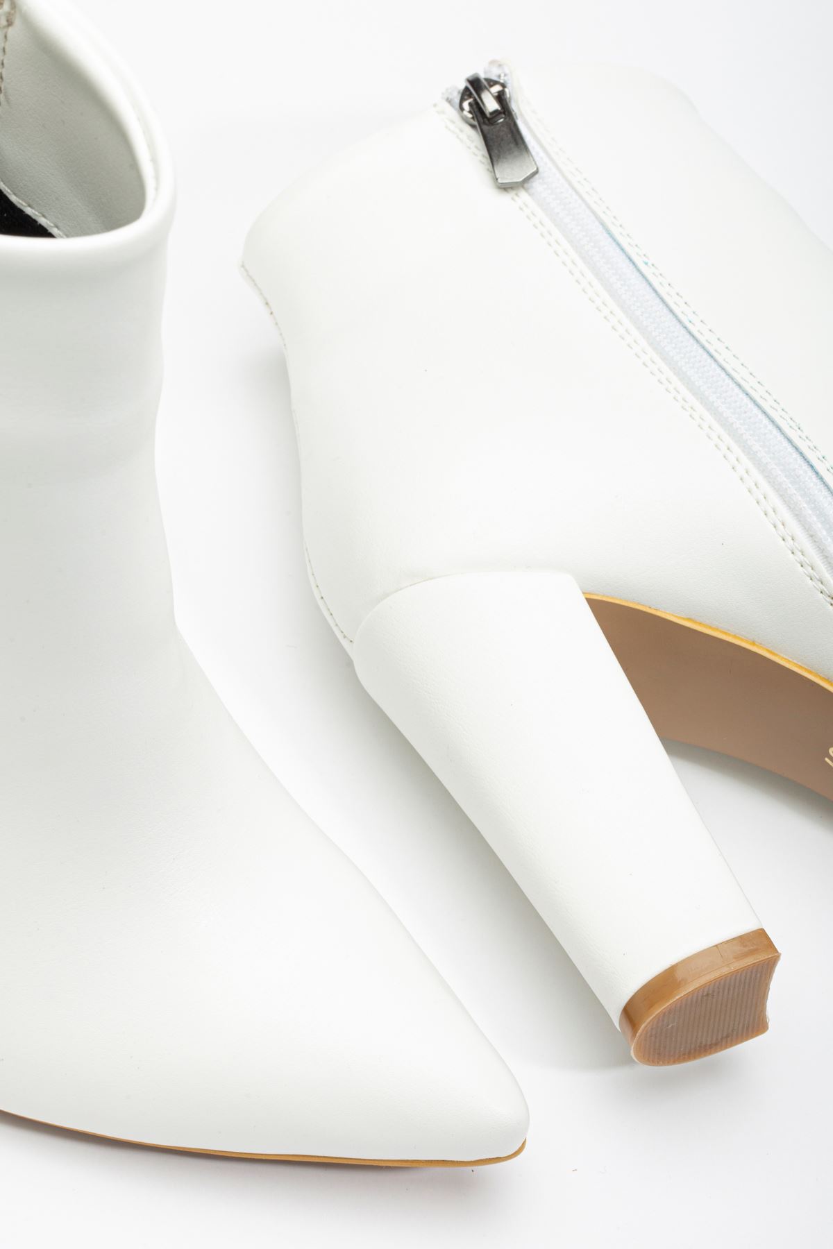 VRT-4801 Beyaz Yüksek Kalın Topuklu Fermuarlı Kadın Bot