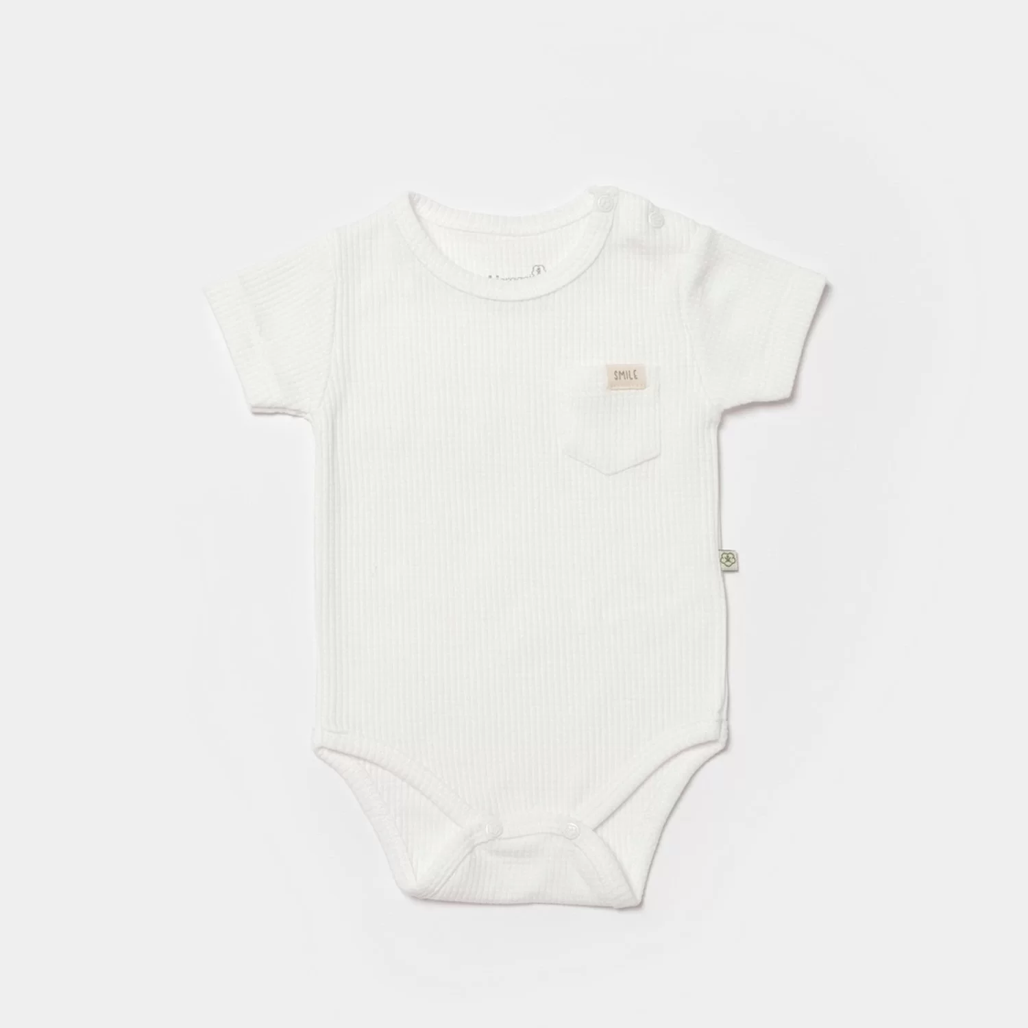 Waffle Smile Kısa Kol Bebek Body Ekru