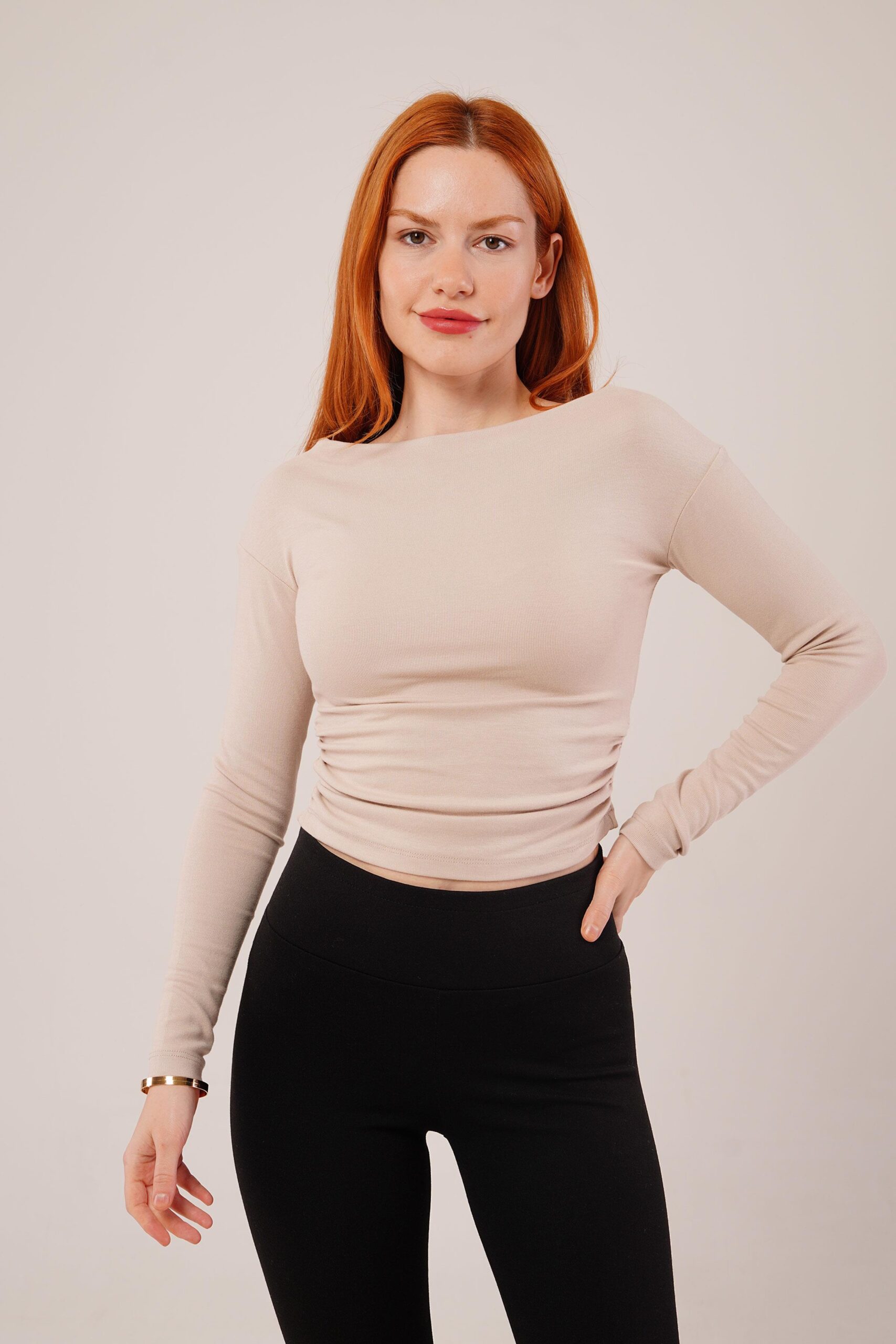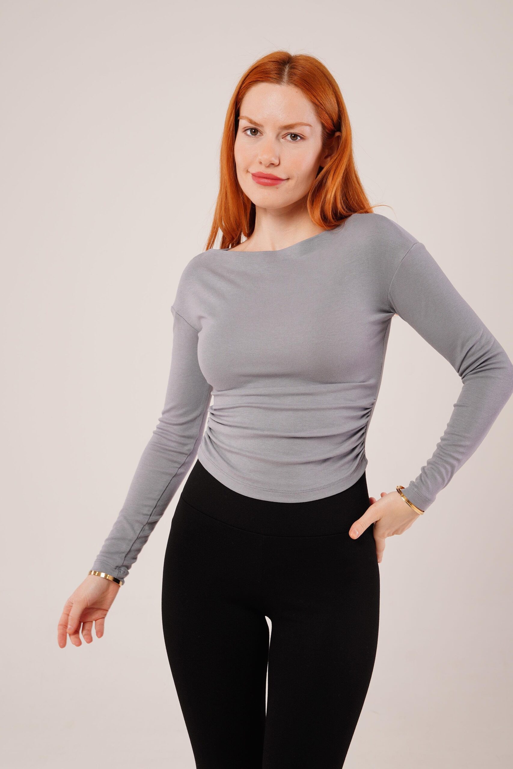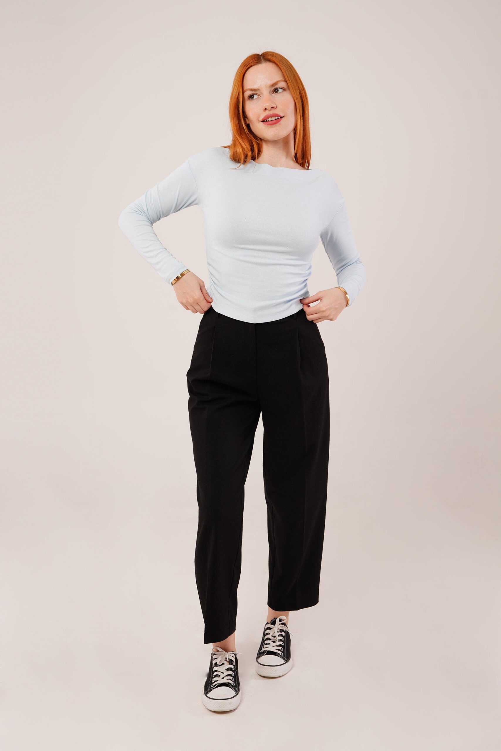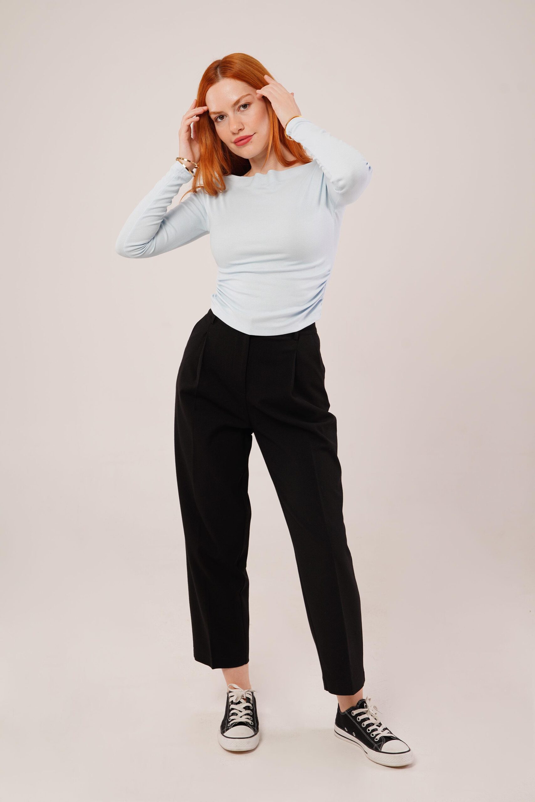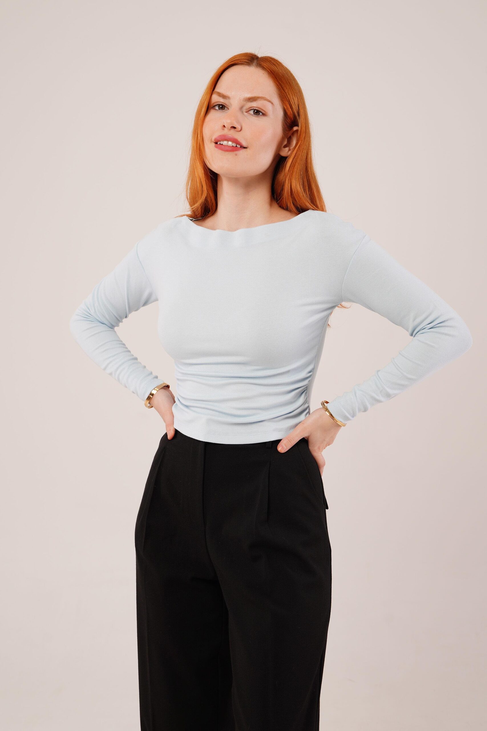 Yaka Detay Uzun Kollu Basic Bebe Mavisi Bluz