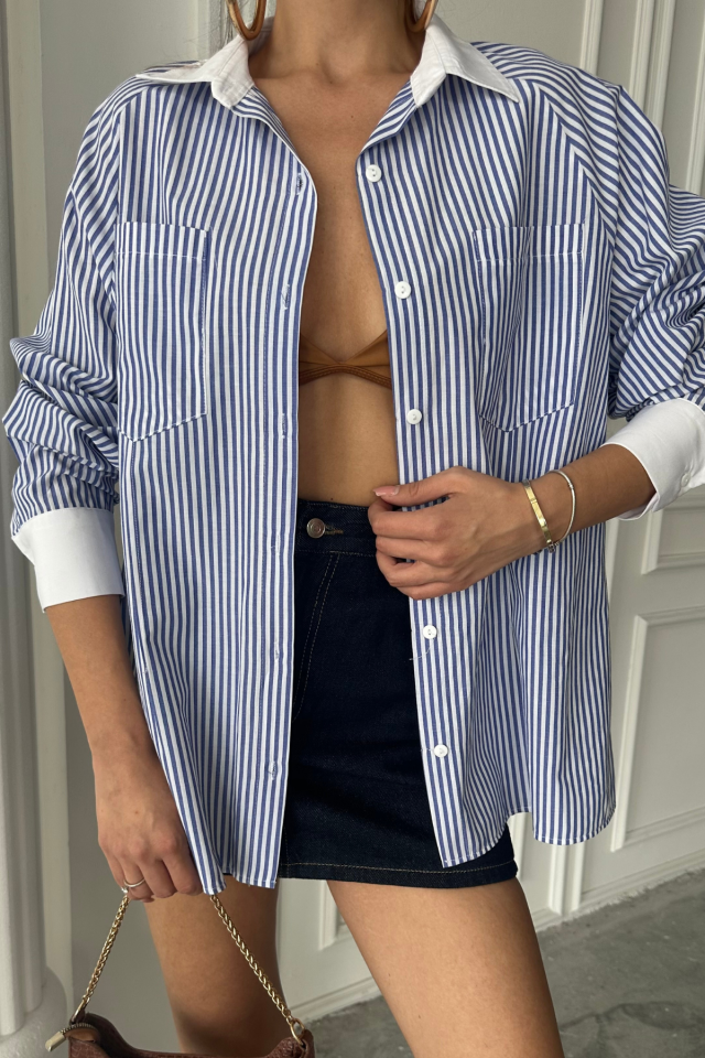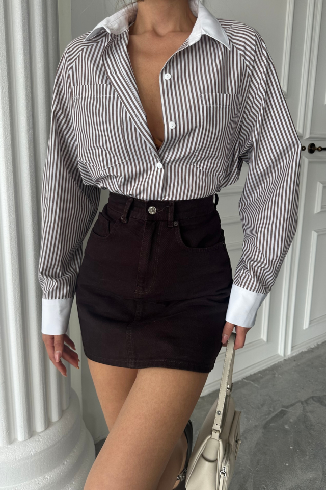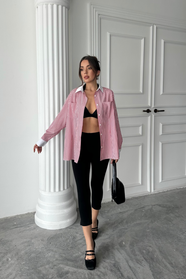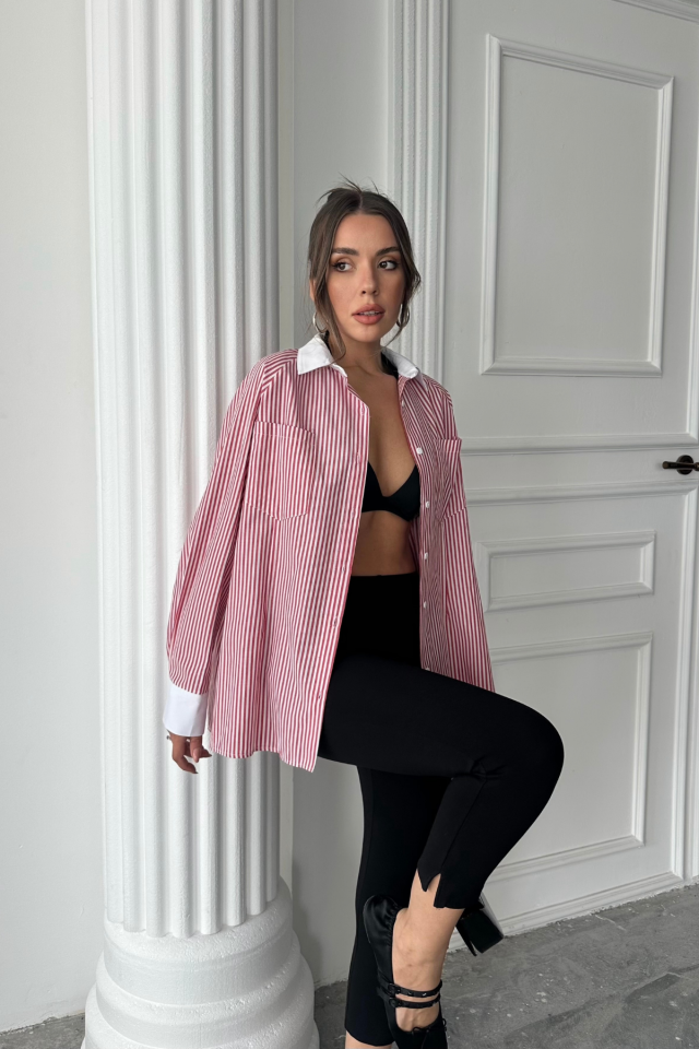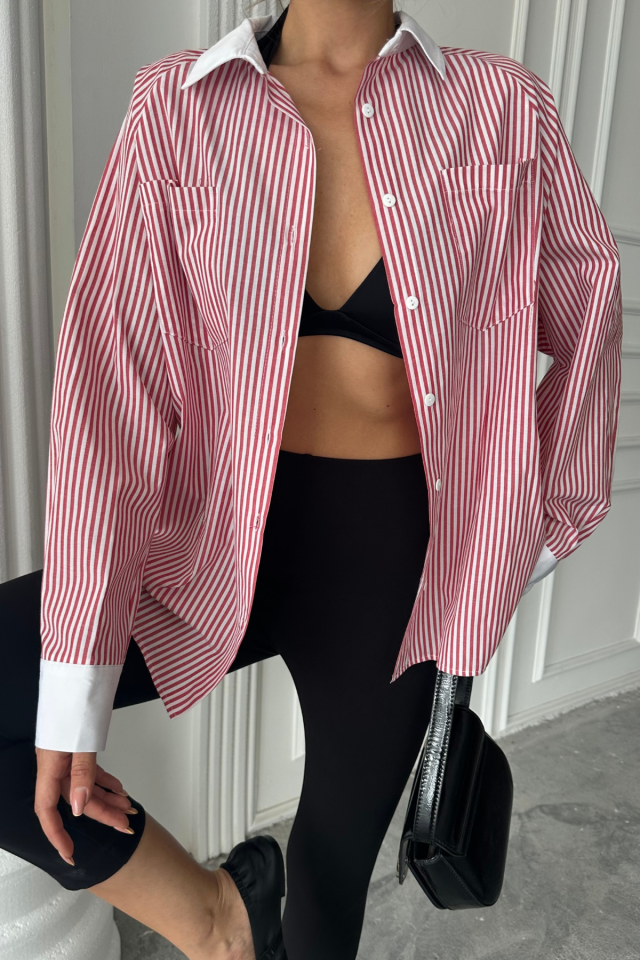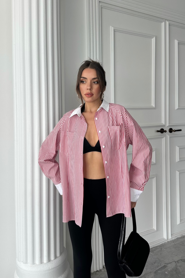 YAKA VE MANŞET BEYAZ BOYFRİEND ÇİZGİLİ POPLİN GÖMLEK – Bordo