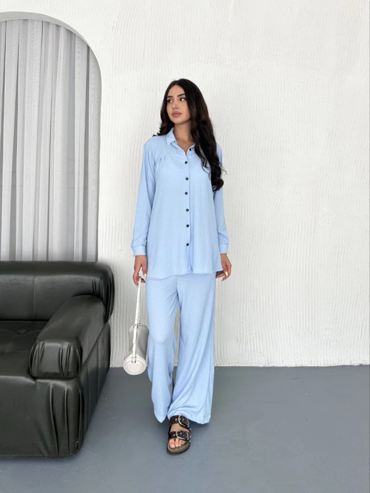Yakalı Düğmeli Uzun Kollu Gömlek Pantolon Ikili Takım – Bebek Mavisi