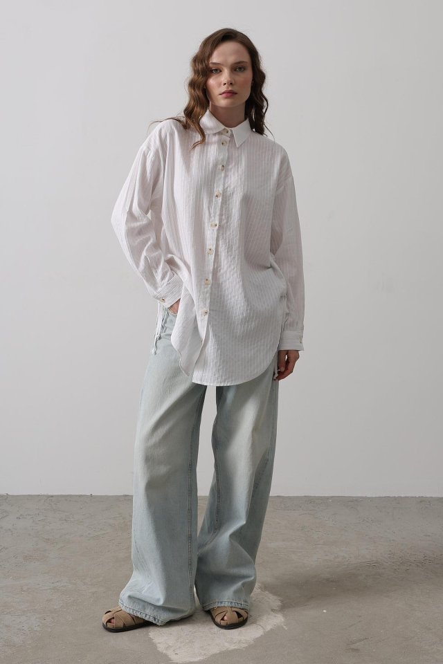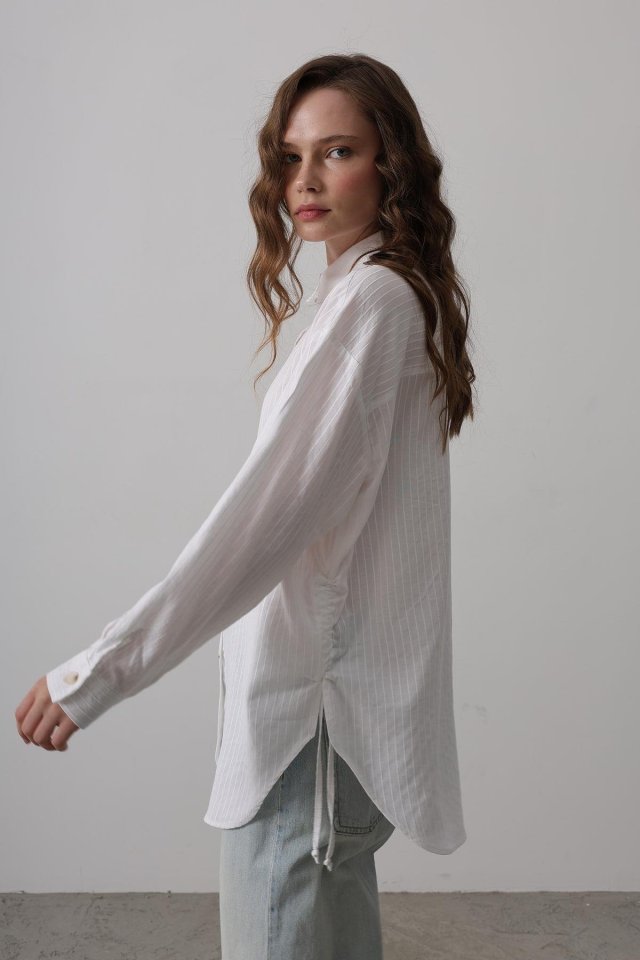 Yan Büzmeli Tunik Gömlek – Beyaz