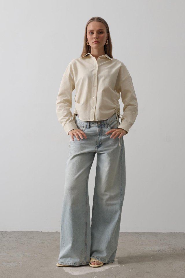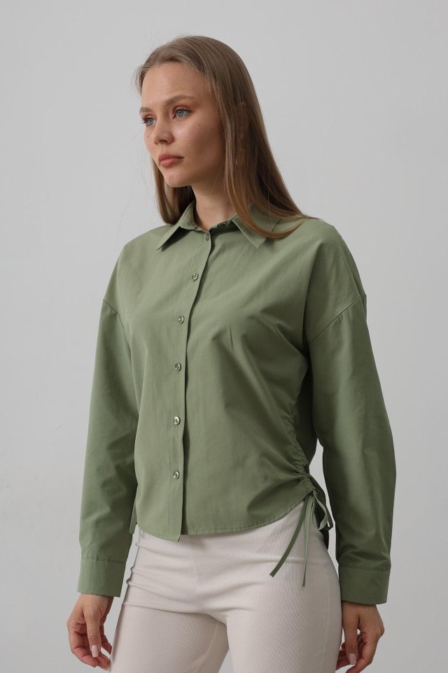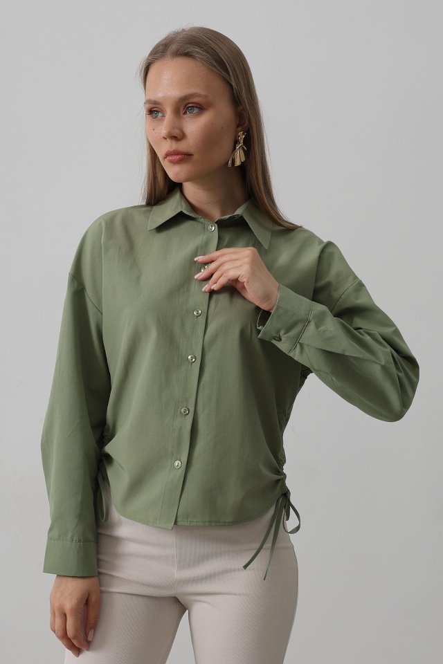 Yanları Bağlamalı Basic Gömlek – Haki