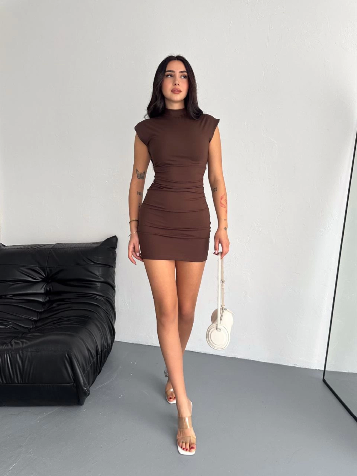 Yarım Bogazlı Kolsuz Mini Boy Elbise – Kahve