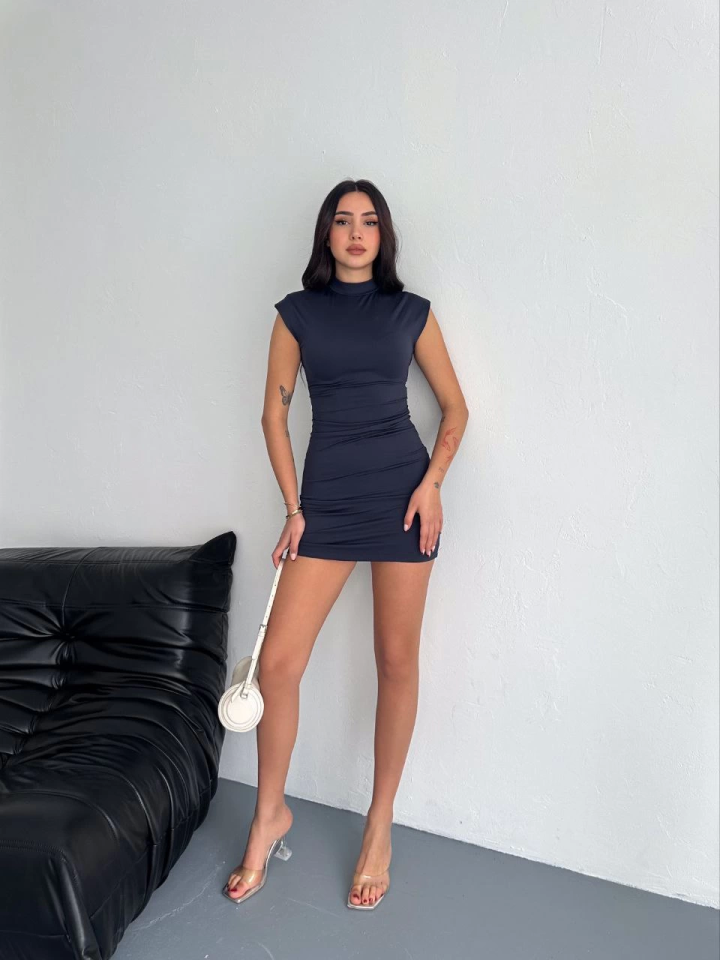 Yarım Bogazlı Kolsuz Mini Boy Elbise – Lacivert