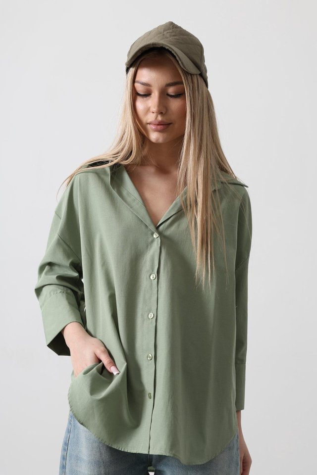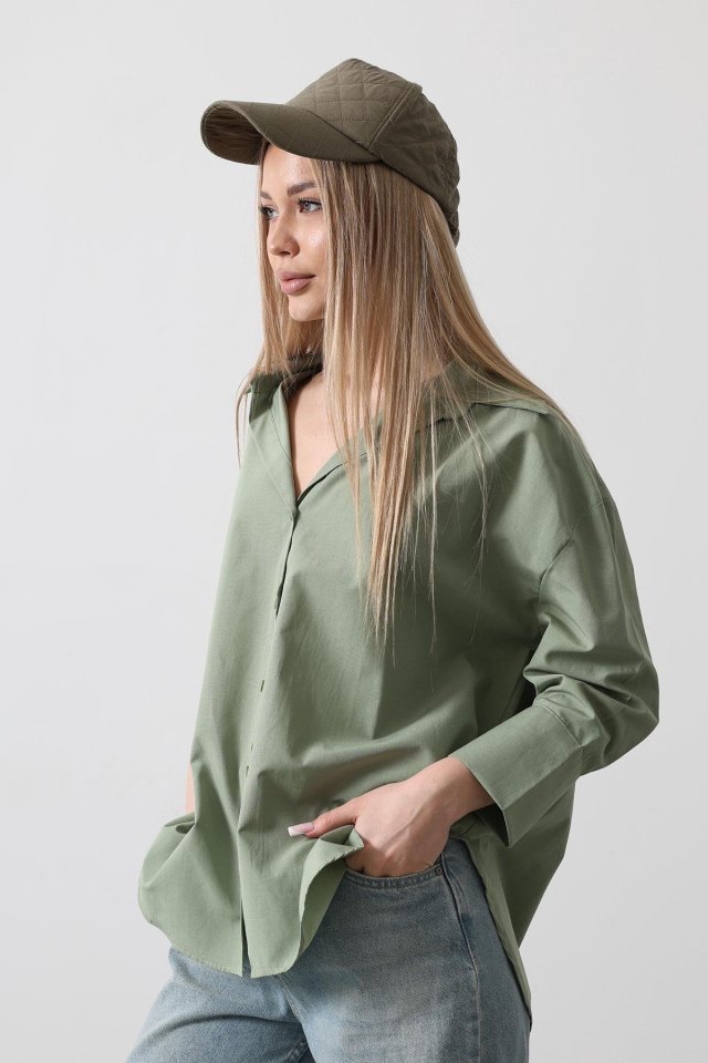 Yarım Manşet Uzun Gömlek – Haki