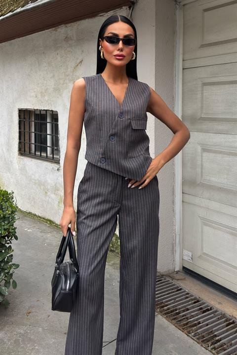 Yeleği Çapraz Detay Düğmeli Cepli Yelekli Takım 10150