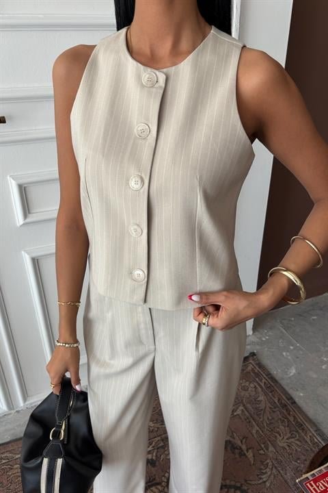 Yelek Plazzo Pantolon Çizgili Flamlı Poliviscon Takım 10178